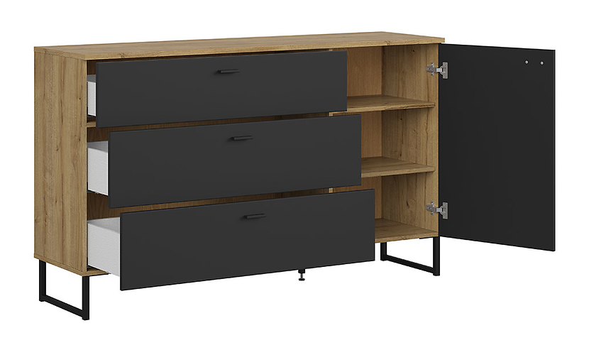 Комод ZENDA KOM1D3S/U дуб Уотерфорд/черный 150 см