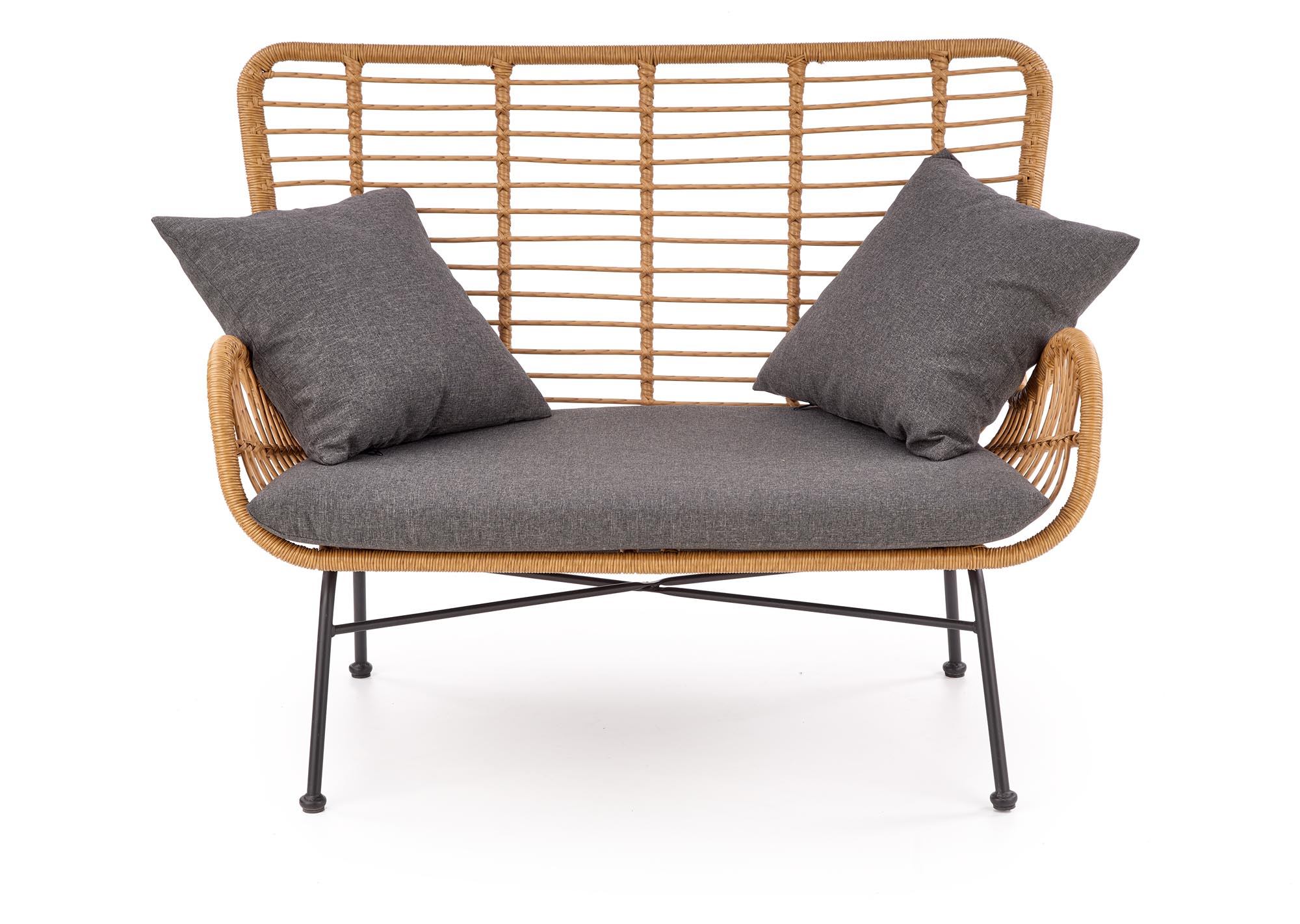 размеры: 96/120/70/45 см, материал: синтетический ротанг/ткань/сталь с порошковым покрытием, цвет: натуральный/серый