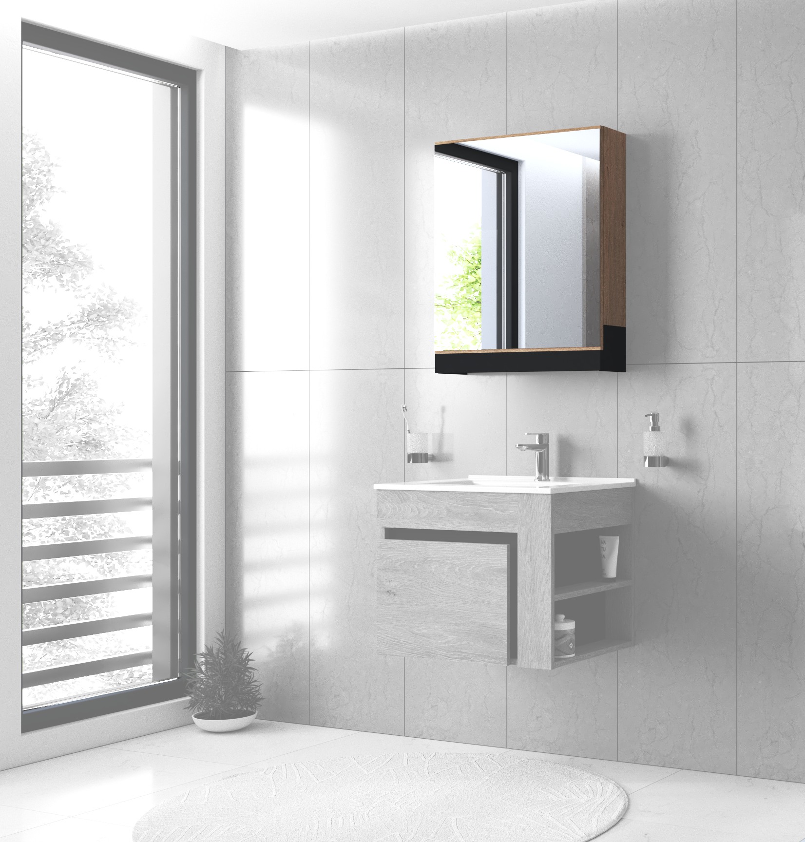 mirror cabinet, DUESA SLU-80, gold oak / black