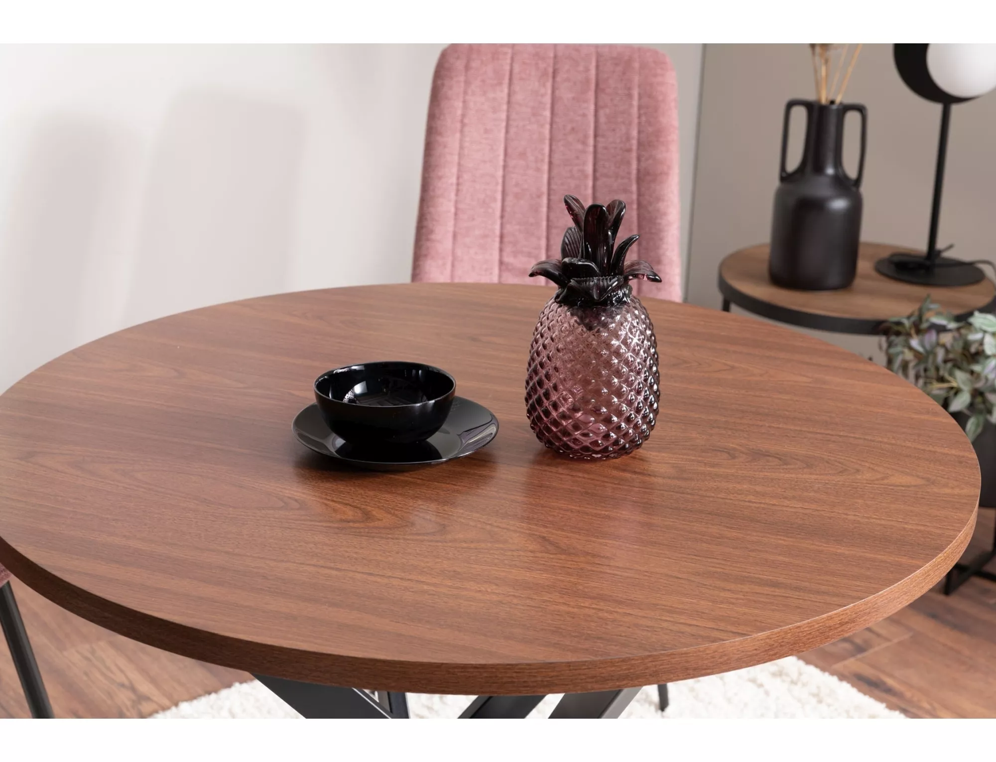 Стол, столешница: МДФ+шпон, каркас: металл, цвет: орех/черный матовый.