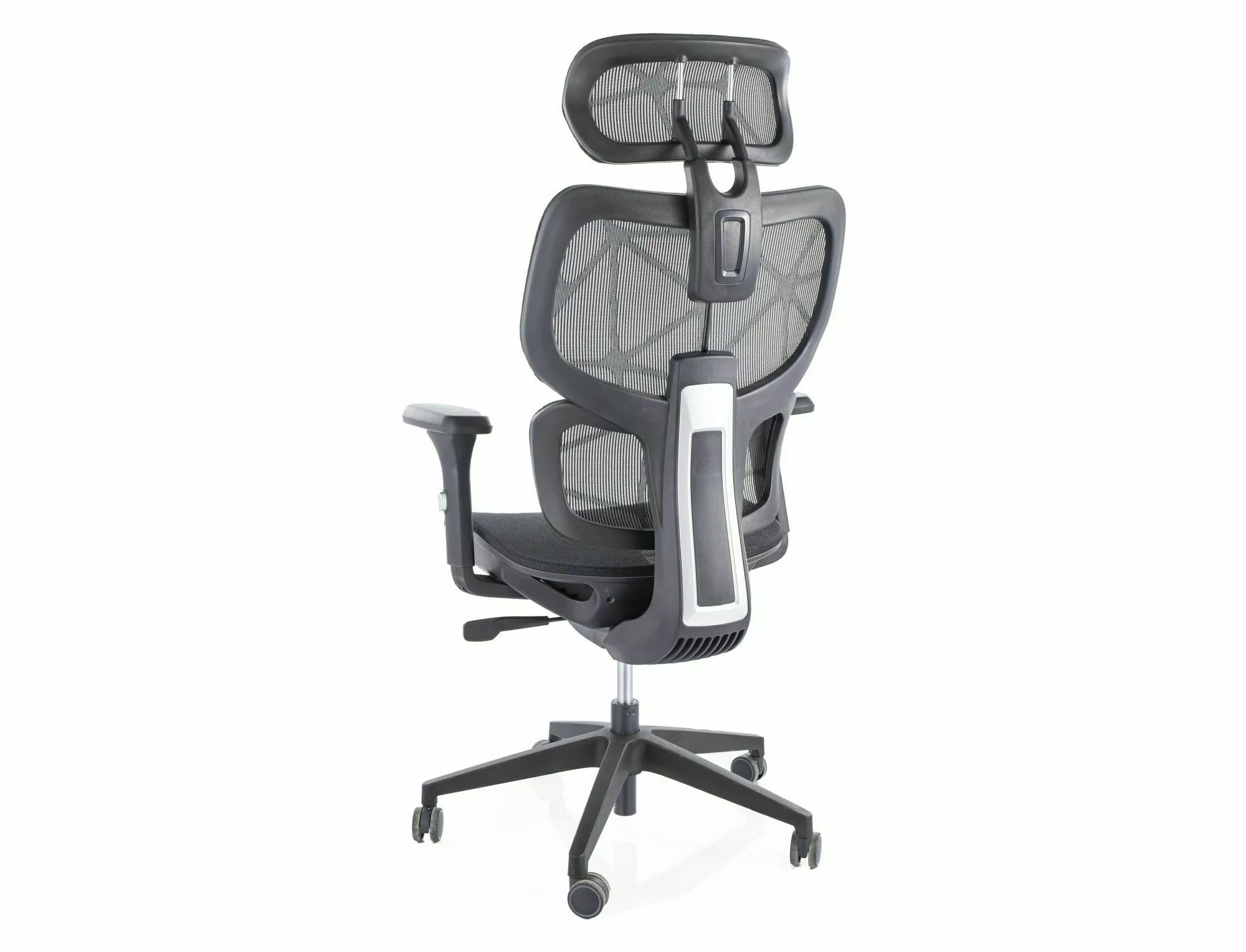 Вращающееся кресло, обивка: сетка, каркас: пластик, цвет: черный/черный. Мультиблок, регулируемый: подлокотники 4D, подголовник, поясничная поддержка.