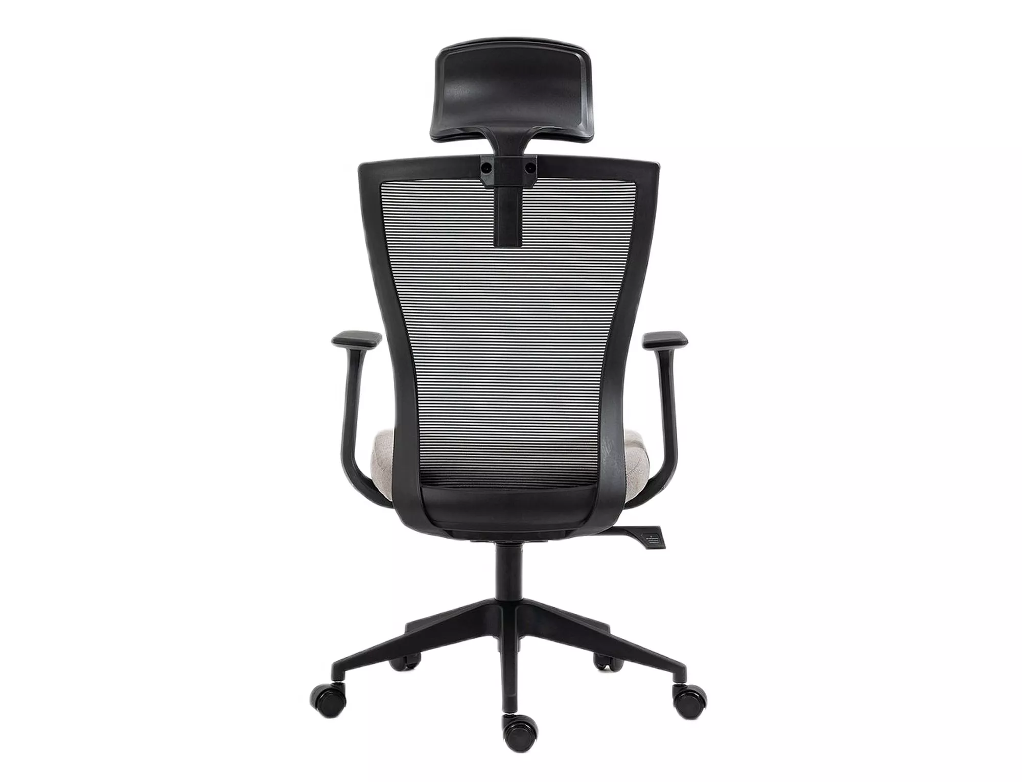 Кресло вращающееся, ткань/сетка, цвет: серый/черный, каркас пластик, цвет: черный, мультиблок, подлокотники фиксированные, подголовник регулируемый.