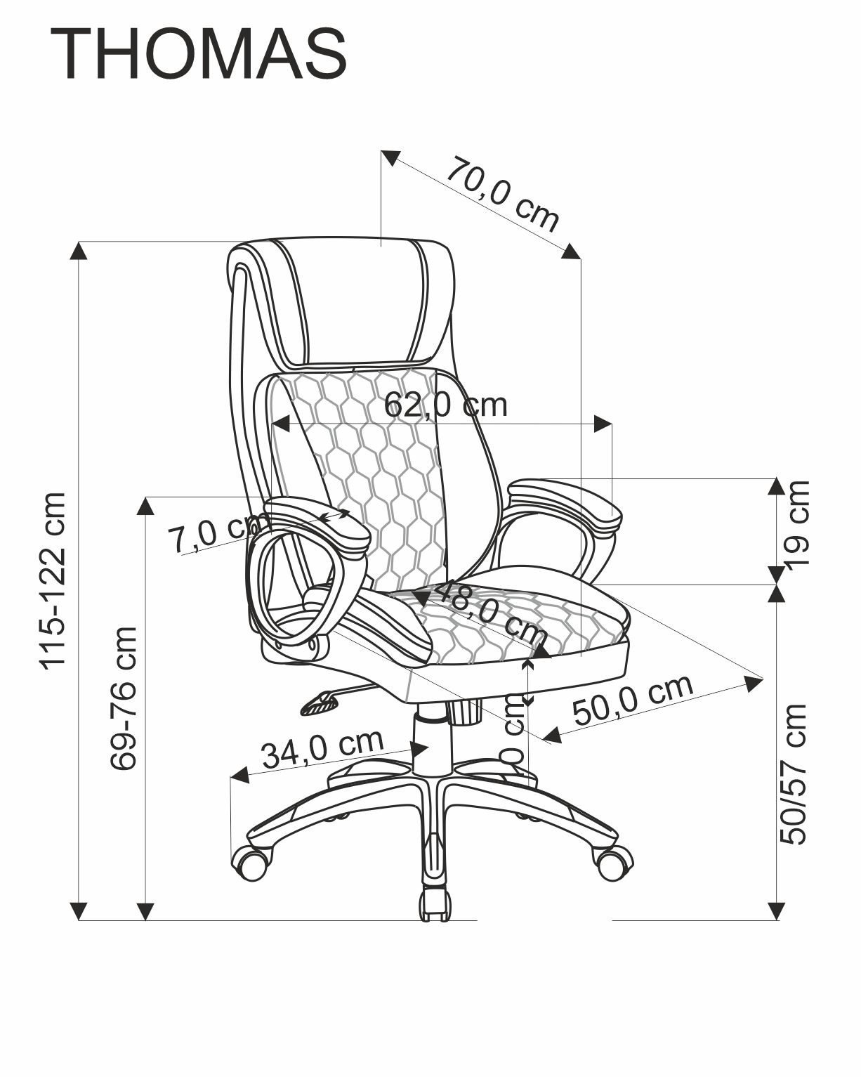 размеры: 62/70/115-122/50-57 см; Механизм TILT, экокожа/перфорированная экокожа, цвет: черный