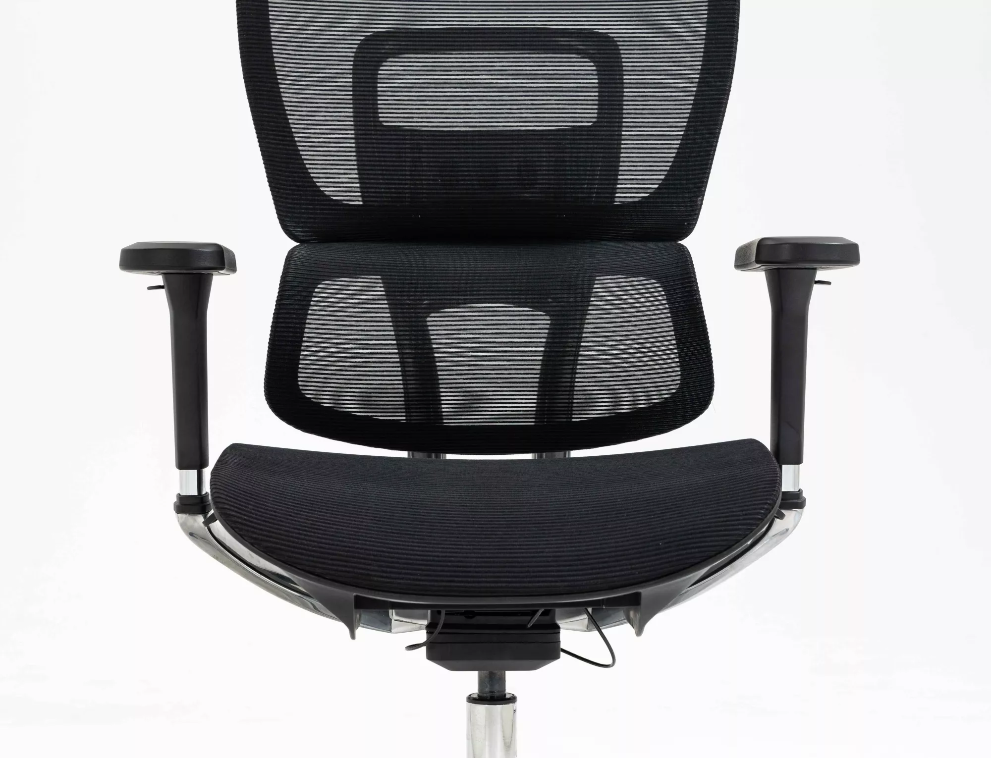 Кресло поворотное, сетка, черное, мультиблок — проводное управление, синхронный механизм, активируемый весом тела, регулируется: подлокотники 4D, подголовник, поясничный отдел, глубина сиденья. Нейлоновые ролики, алюминиевая крестовина/основание, макс. нагрузка 136 кг, привод класса 4.