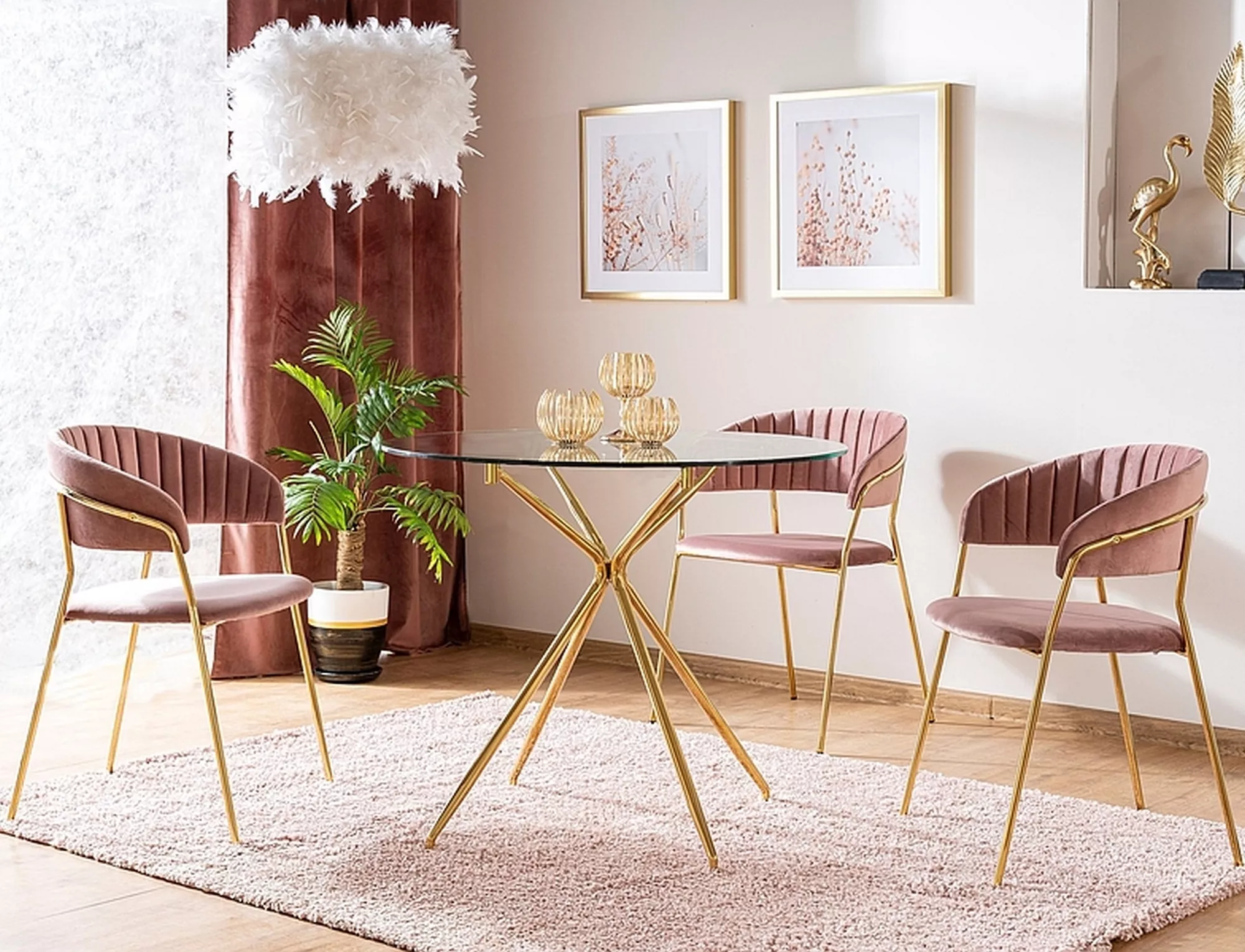 Стол, столешница: закаленное стекло, каркас: металл, цвет: прозрачный/золотой.
