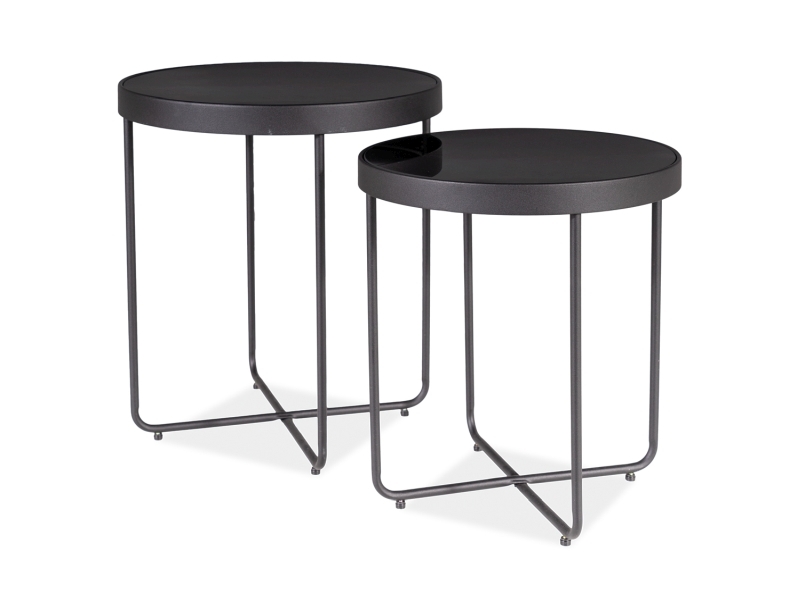 Комплект столов, столешница: закаленное стекло, каркас: металл, цвет: чёрный.