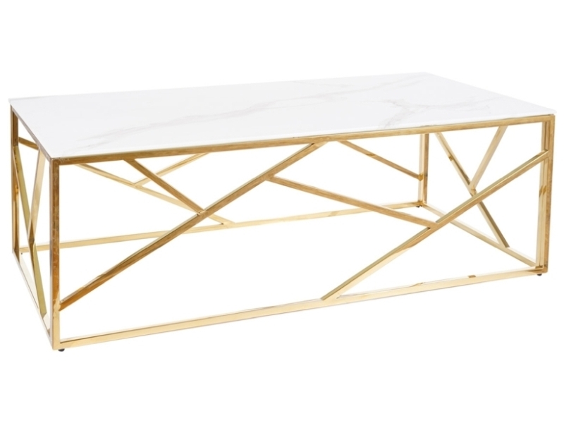 Стол журнальный, столешница: закаленное стекло, каркас: нержавеющая сталь, цвет: белый, под мрамор/золото.