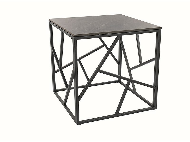 Стол журнальный, столешница: керамика, под мрамор, каркас: металл, цвет: серый/черный.