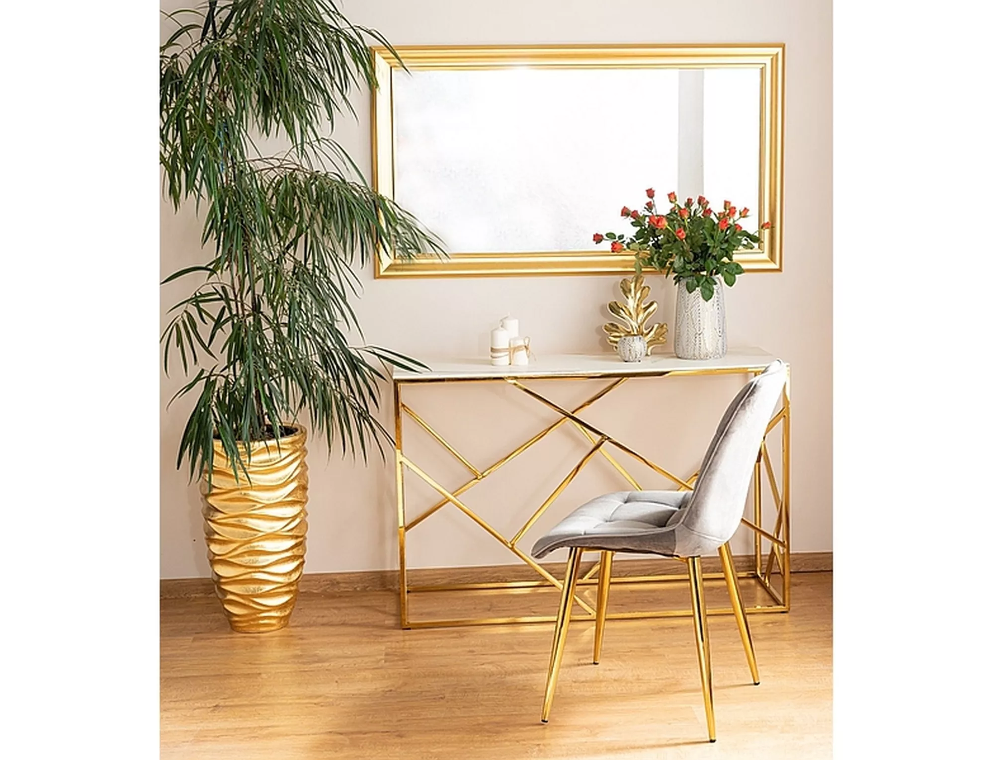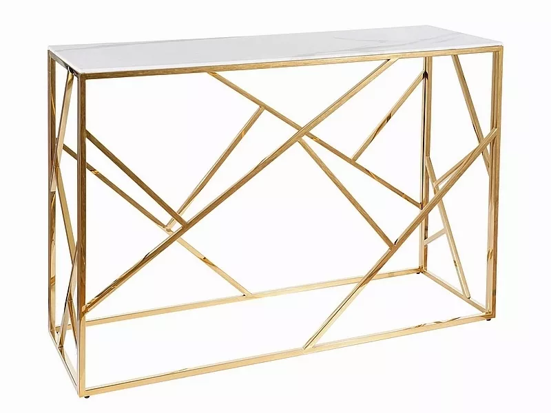 Консоль, столешница: закаленное стекло, рама: нержавеющая сталь, цвет: белый, под мрамор/золото.