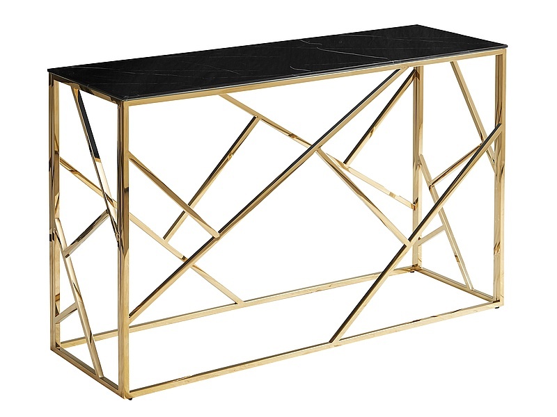 Консоль, верхняя часть: закаленное стекло, рама: нержавеющая сталь, цвет: черный, под мрамор/золото.