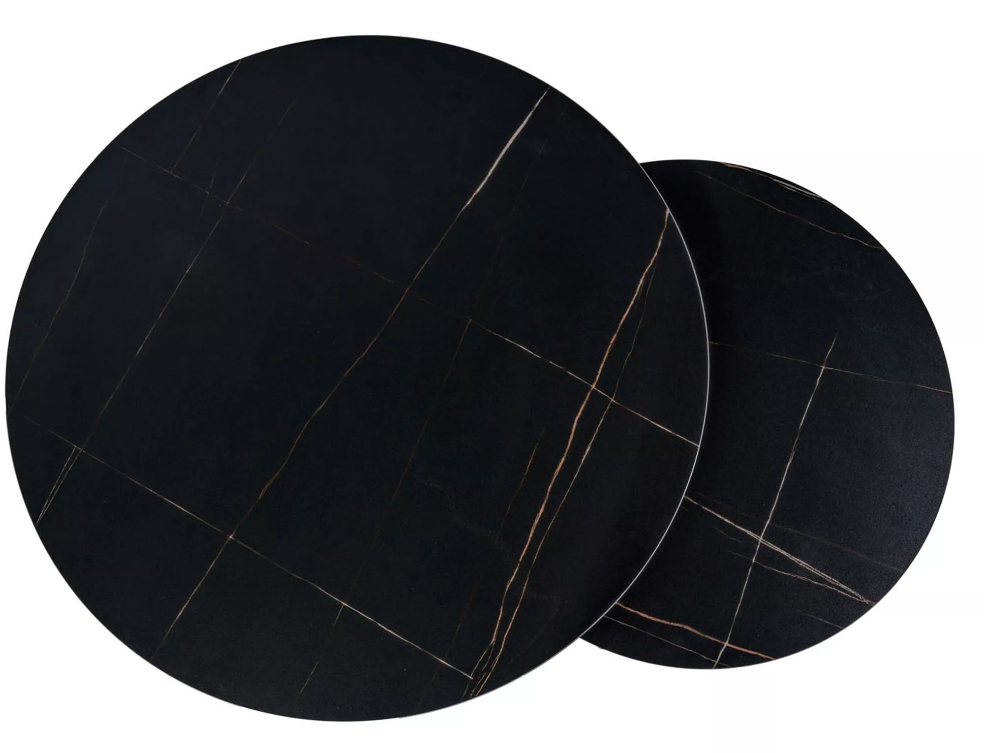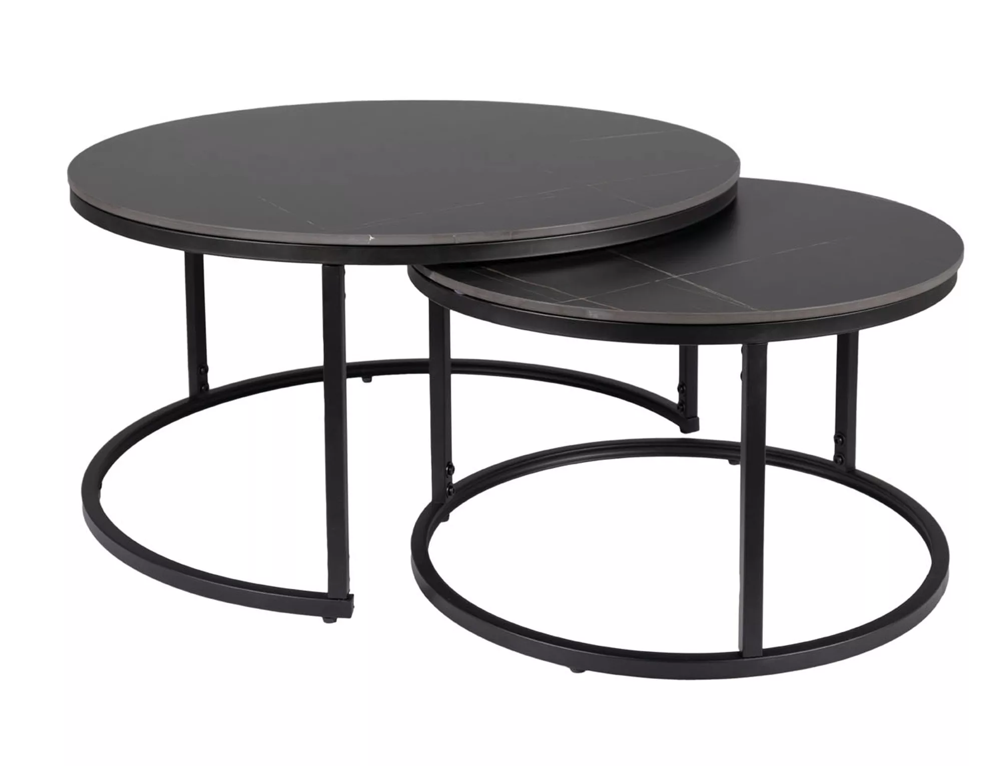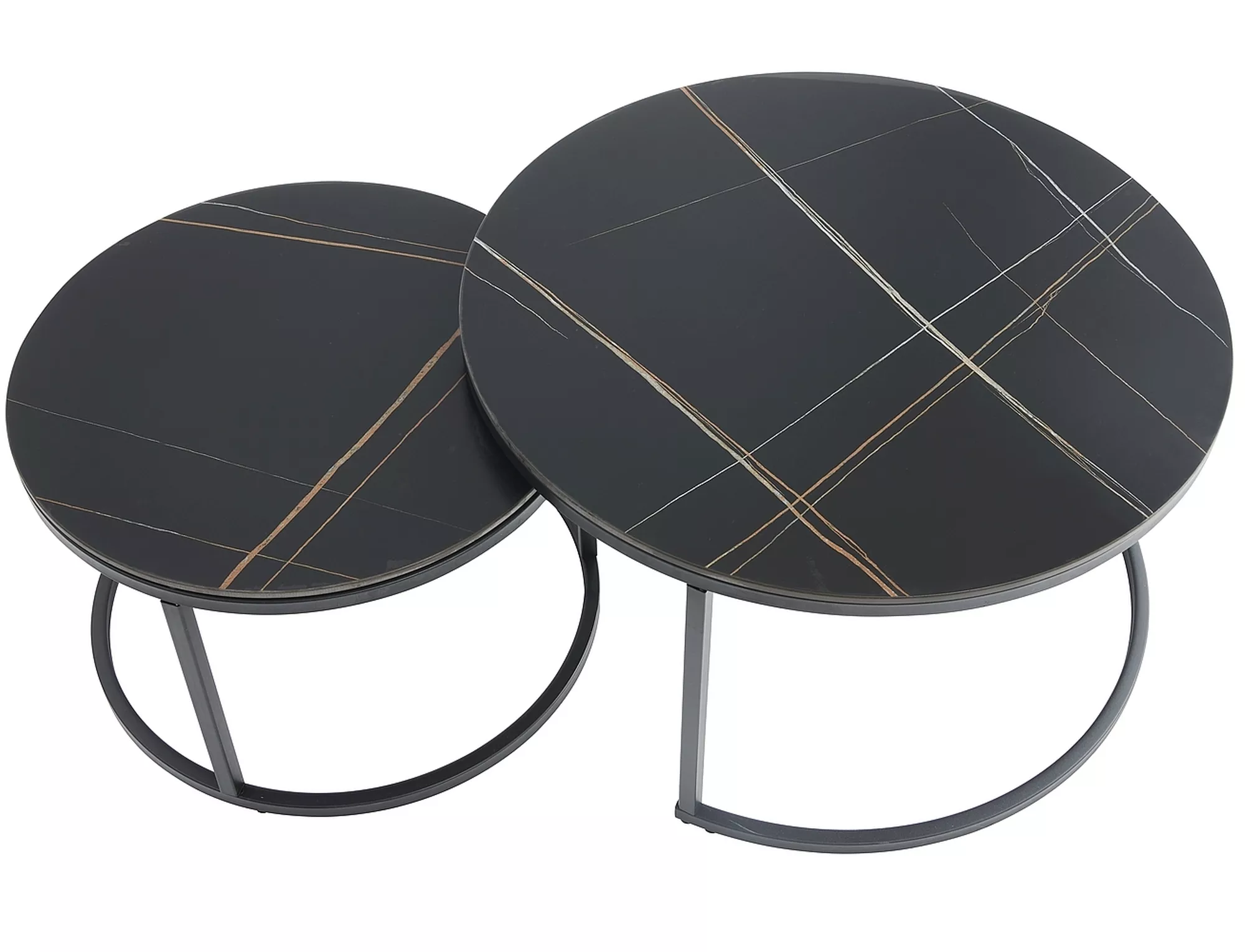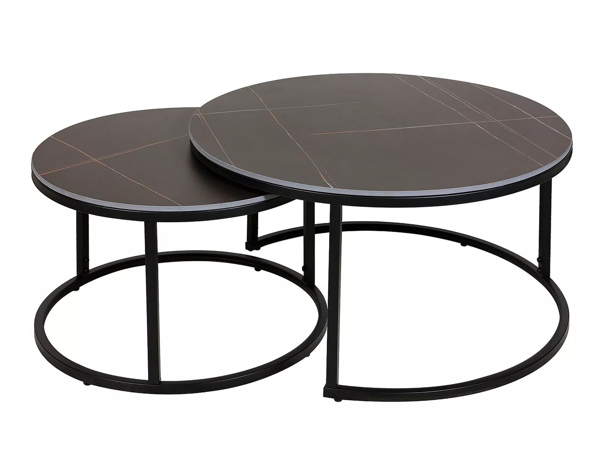 Комплект скамеек, столешница: керамика, каркас: металл, цвет: черный, под мрамор/черный матовый. Размеры меньшего стола: диаметр 60; рост: 38см.