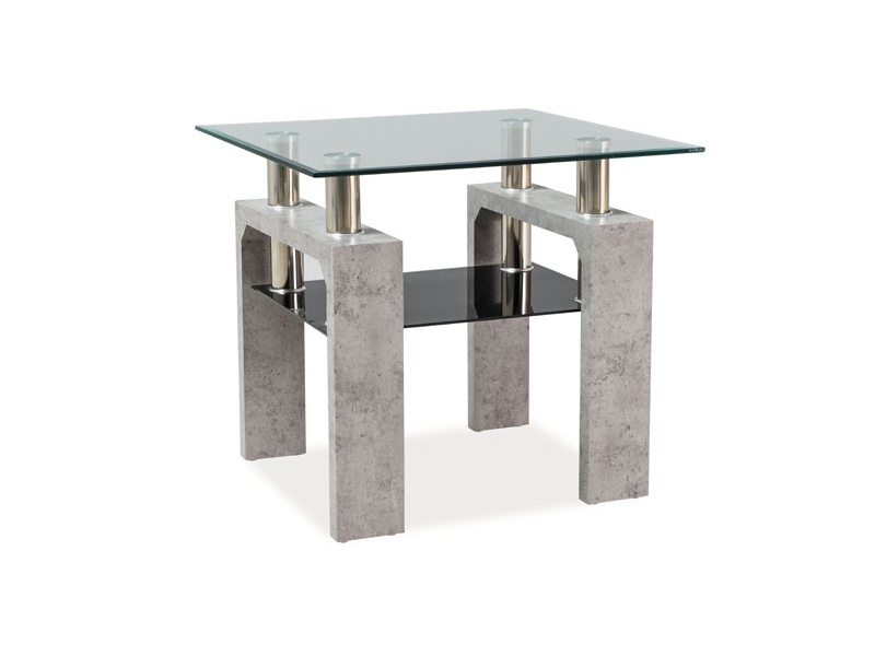 Журнальный столик, столешница: закаленное стекло/каркас МДФ, цвет: прозрачный/бетон.