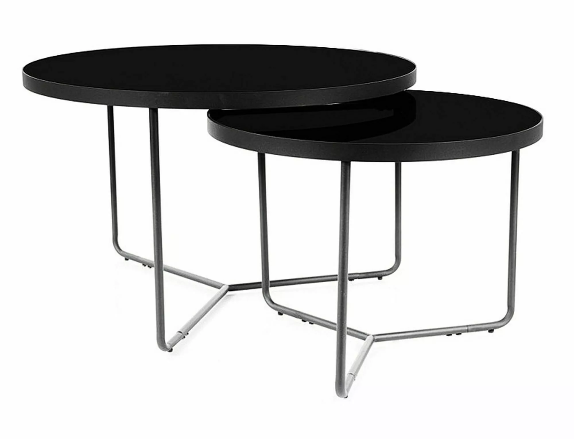 Комплект столов, столешница: закаленное стекло, каркас: металл, цвет: чёрный/черный. Размеры меньшего стола: