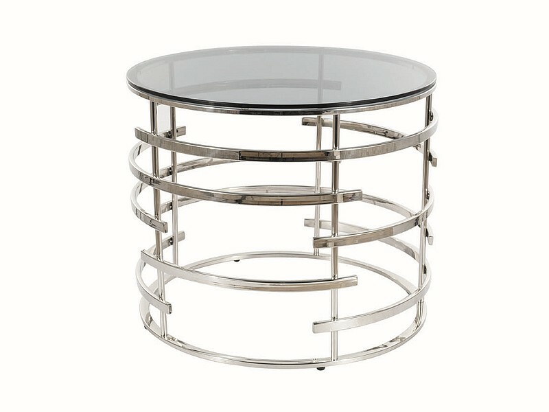 Стол журнальный, столешница: закаленное дымчатое стекло, каркас: нержавеющая сталь, цвет: серебро.