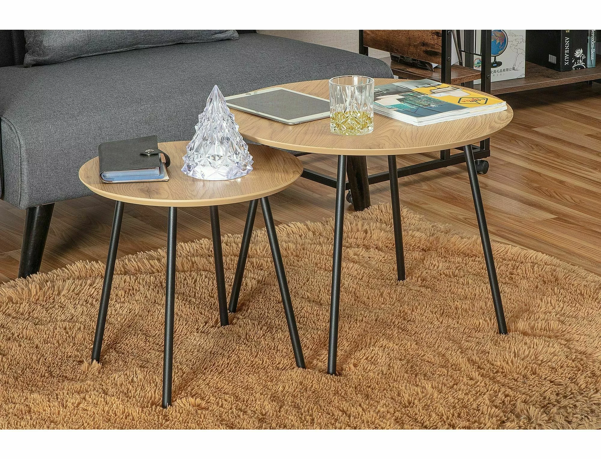 Стол журнальный, столешница: ламинат, каркас: металл, цвет: дуб/черный матовый.