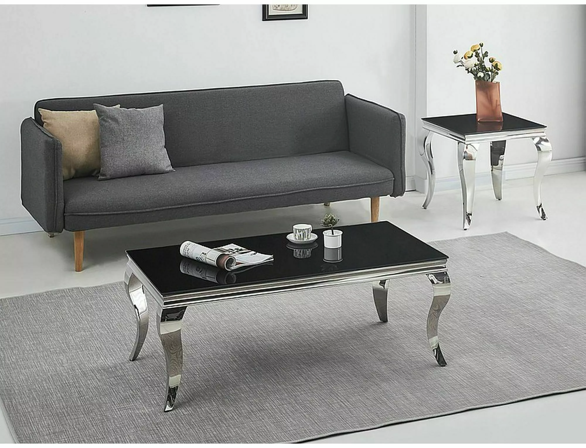 Стол журнальный, столешница: стекло, каркас: металл, цвет: черный/хром.