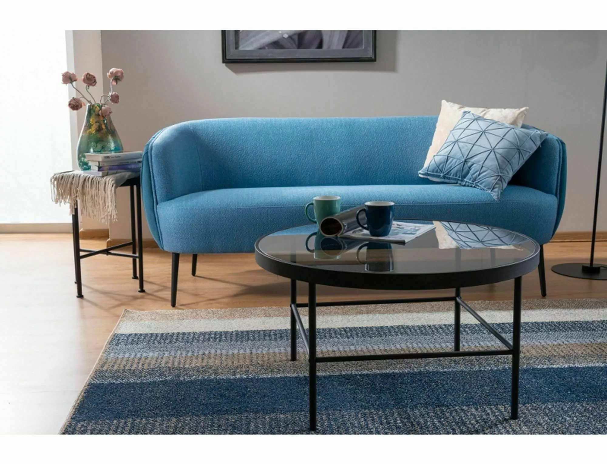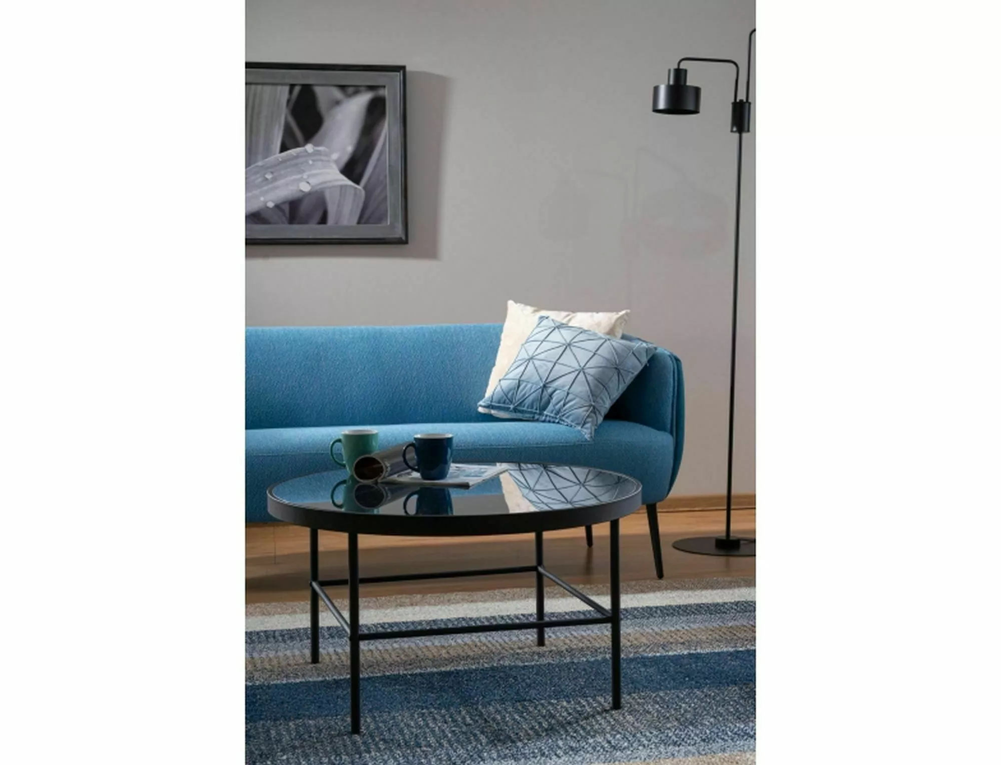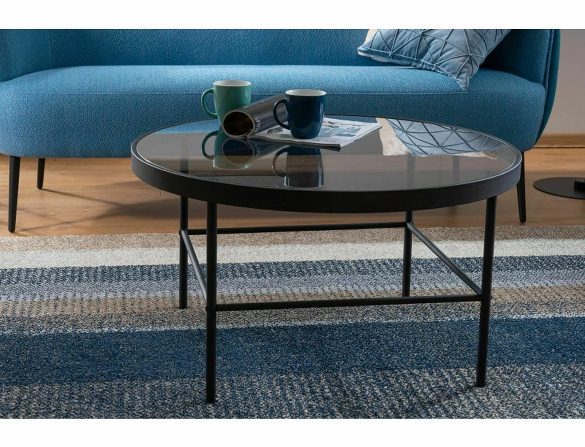 Стол журнальный, столешница: дымчатое закаленное стекло, каркас: металл, цвет: черный.
