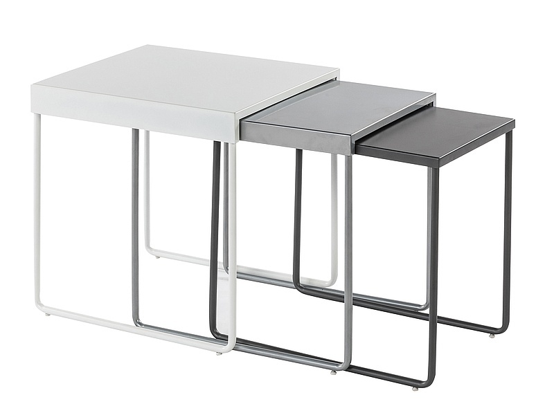 Комплект журнальных столиков, столешница: металл, каркас: металл, цвет: тёмно-серый, серый, белый. Размеры столов меньшего размера: 1. 45х35, h-48; 2. 45х31, h-46 см.
