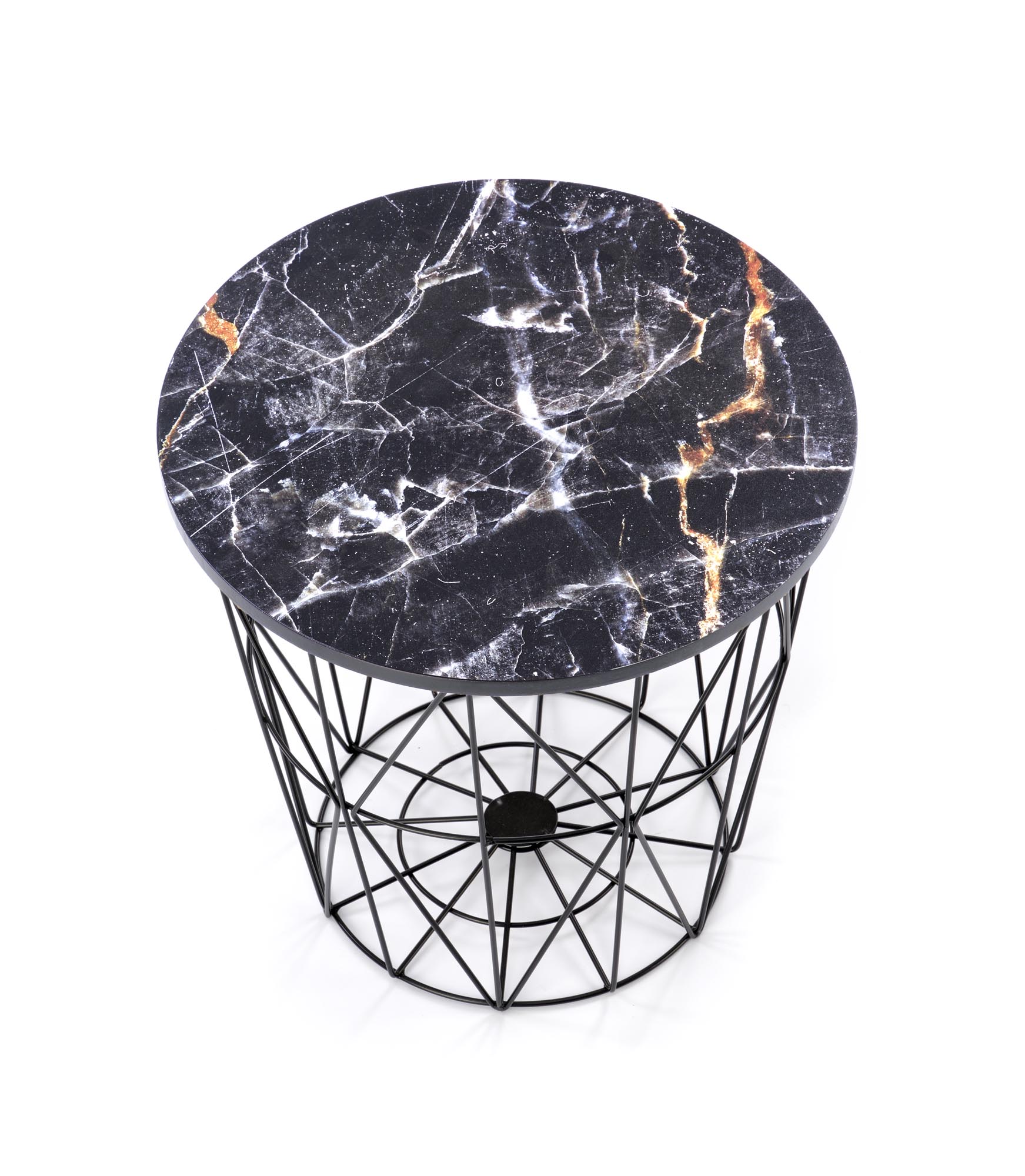 размеры: фи 42/41 см, материал: ламинированный МДФ/сталь с порошковым покрытием, цвета: рама — черный, столешница — черный мрамор.