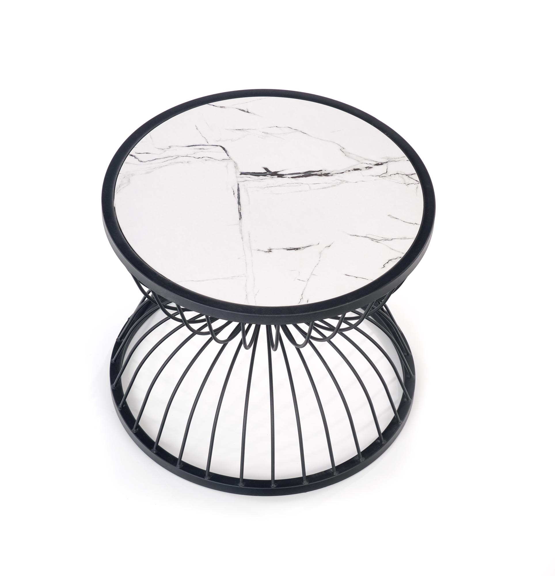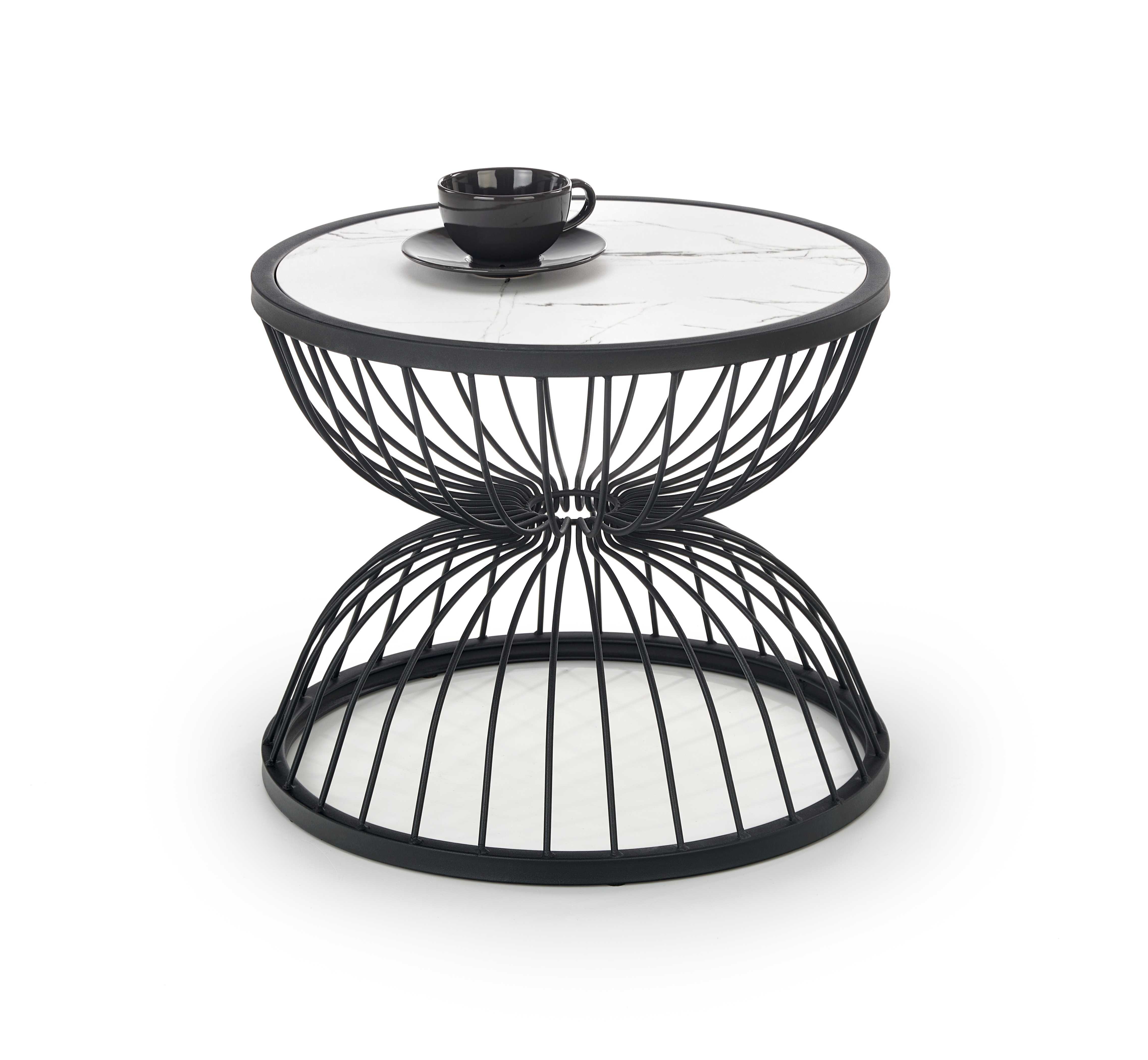 KIM coffee Laud top — white marble, frame — black