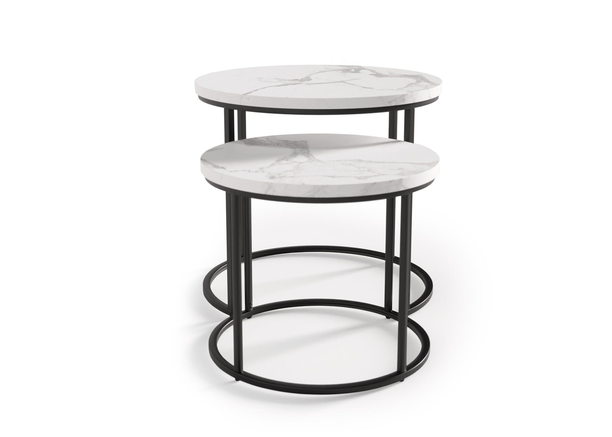 wymiary: большой — фи53/45 см, маленький — фи43/35 см, sef из двух, материал: ламинированный МДФ/сталь с порошковым покрытием, цвет: белый мрамор/черный