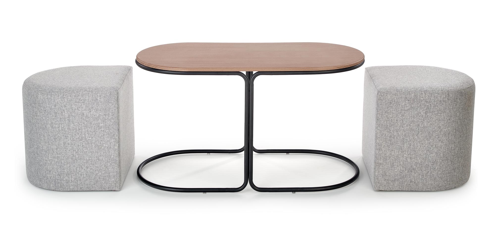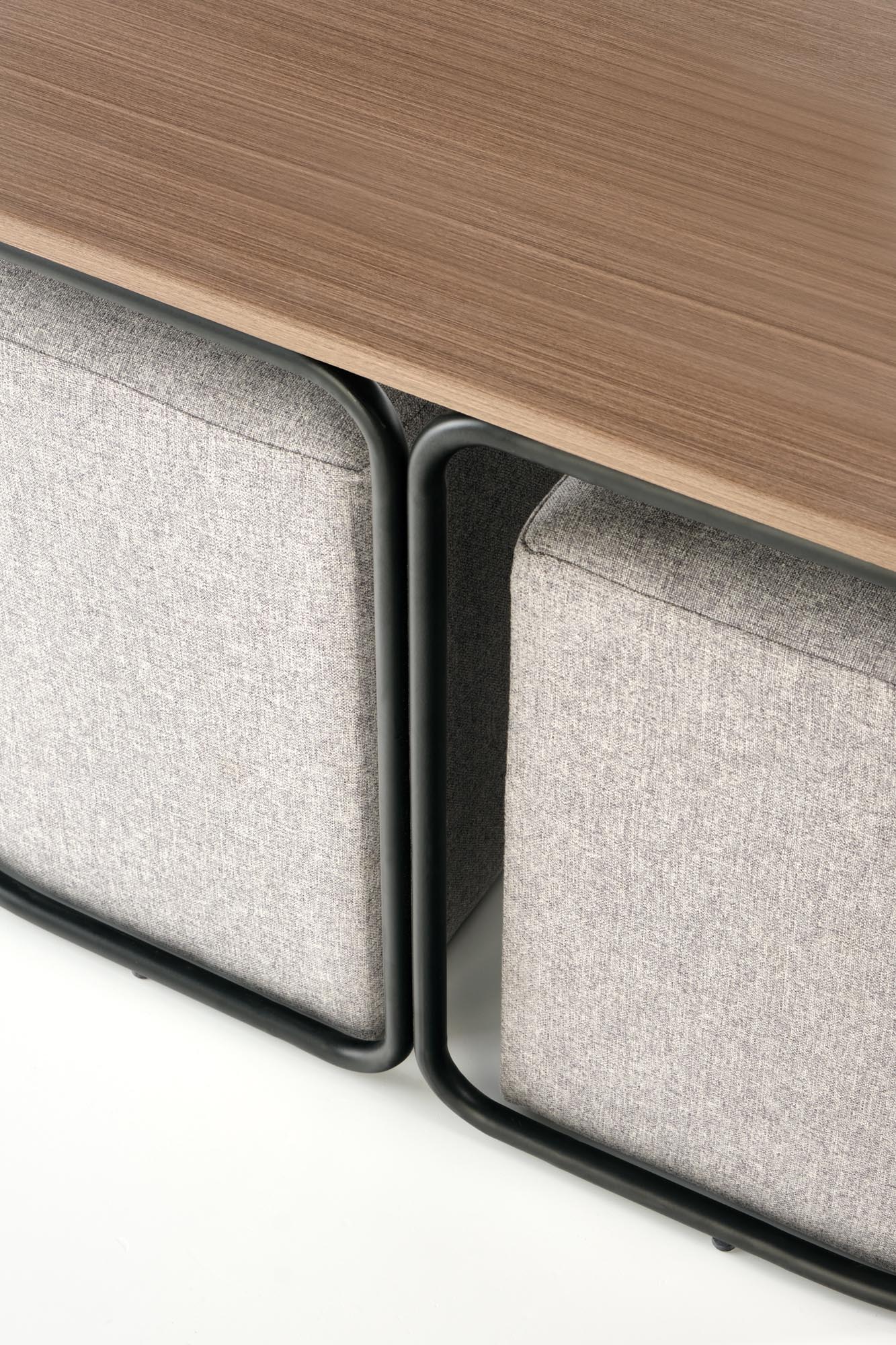 PAMPA, coffee Laud with pouffes, top: walnut, legs: black, pouffe: grey