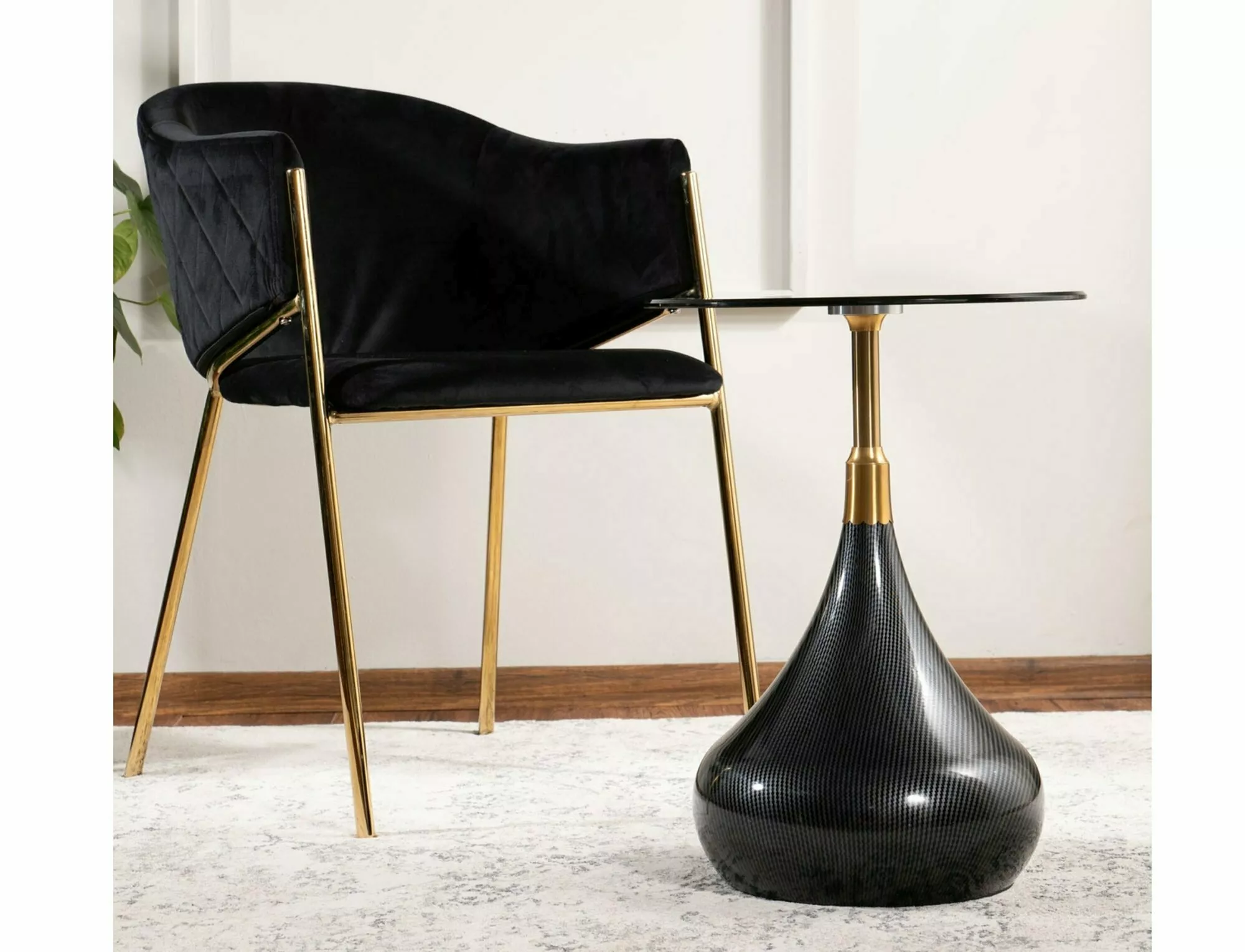 Стол журнальный, столешница: закаленное стекло, каркас: металл, цвет: черный/черный+золото.