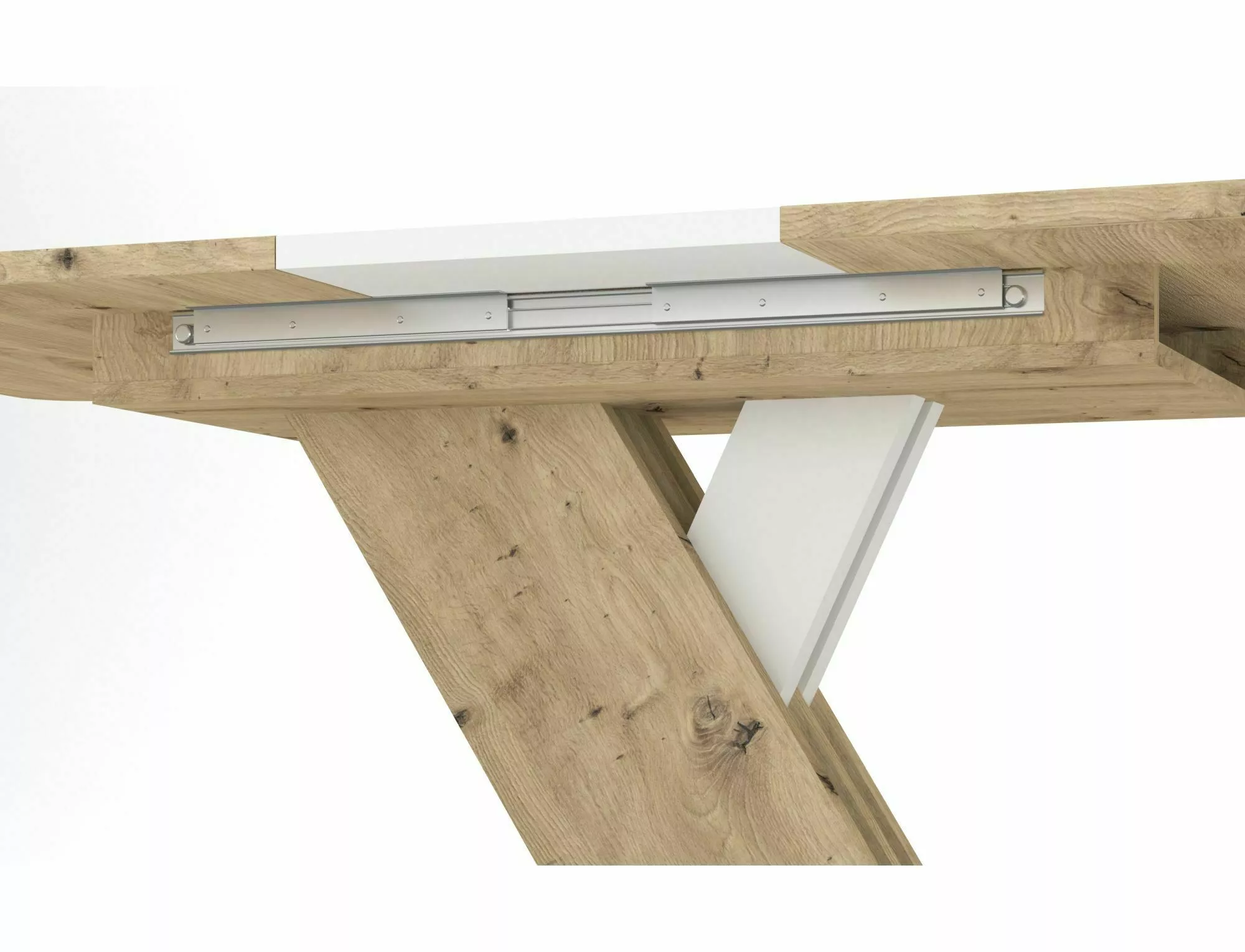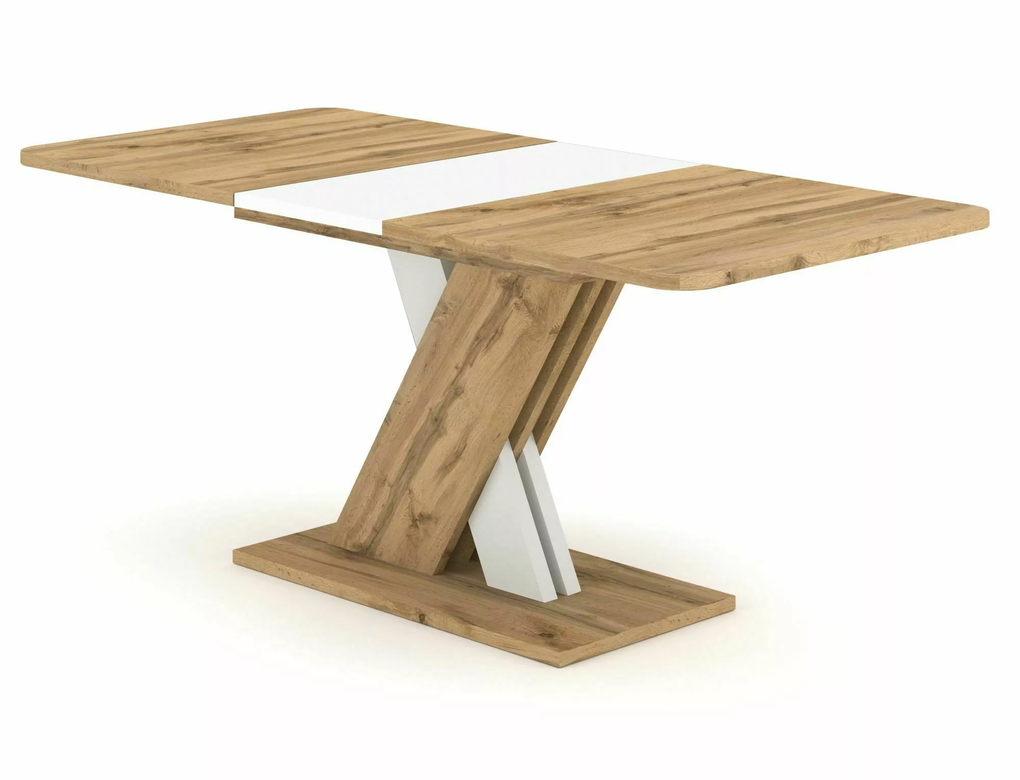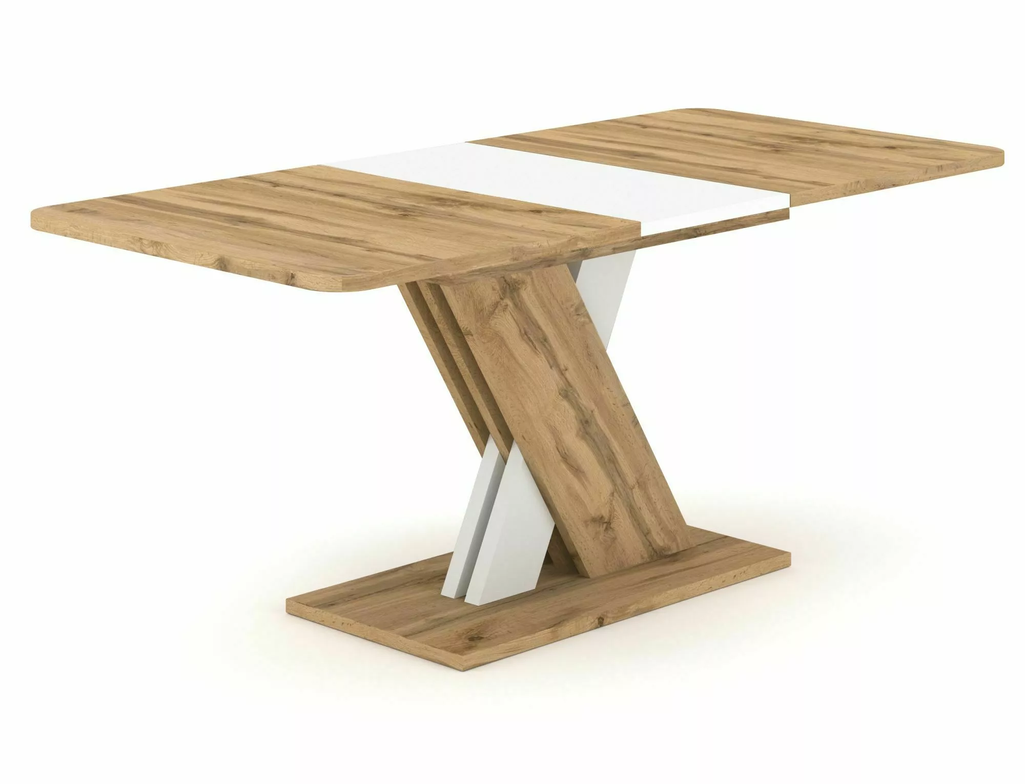 Стол раздвижной, столешница: ламинат, каркас: ламинат, цвет: дуб вотан/белый матовый.