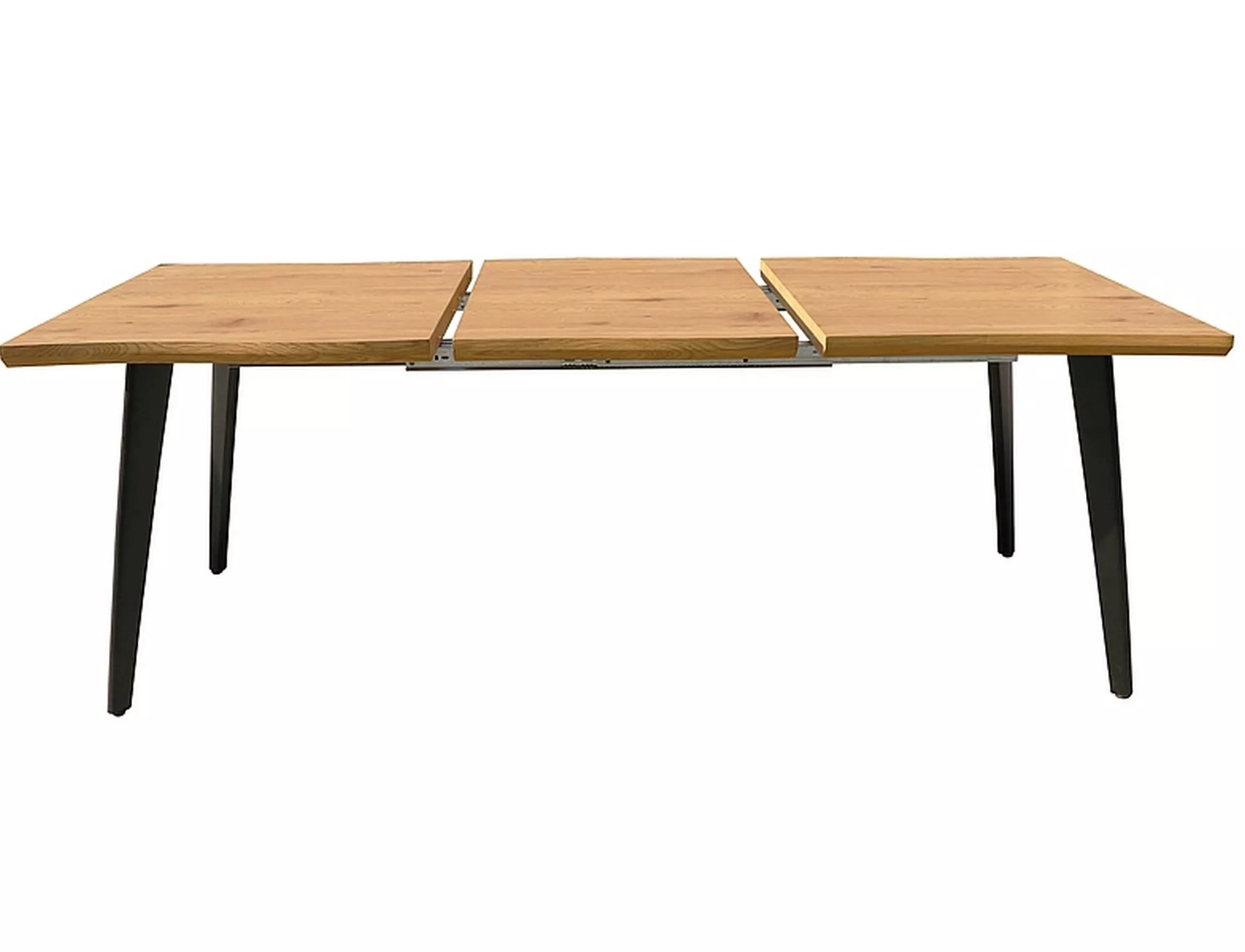 Стол раздвижной, столешница: МДФ+шпон, каркас: металл, цвет: дуб/черный матовый. Примечание. Изменение: вставка-бабочка.
