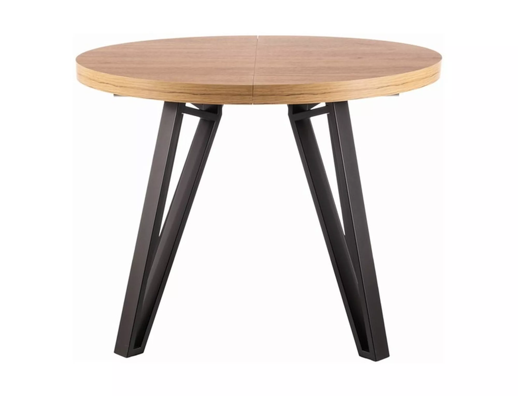 Стол раздвижной, столешница: ламинат, каркас: металл, цвет: дуб ремесленный/черный. Стол круглый, с дополнительной столешницей шириной 68см (вставка хранится отдельно). Толщина верха 48 мм.