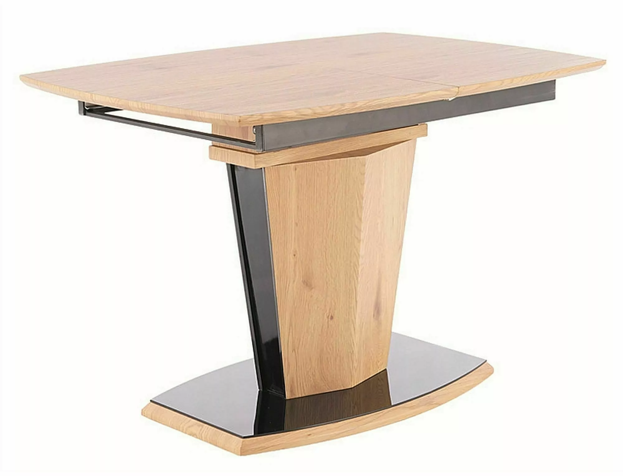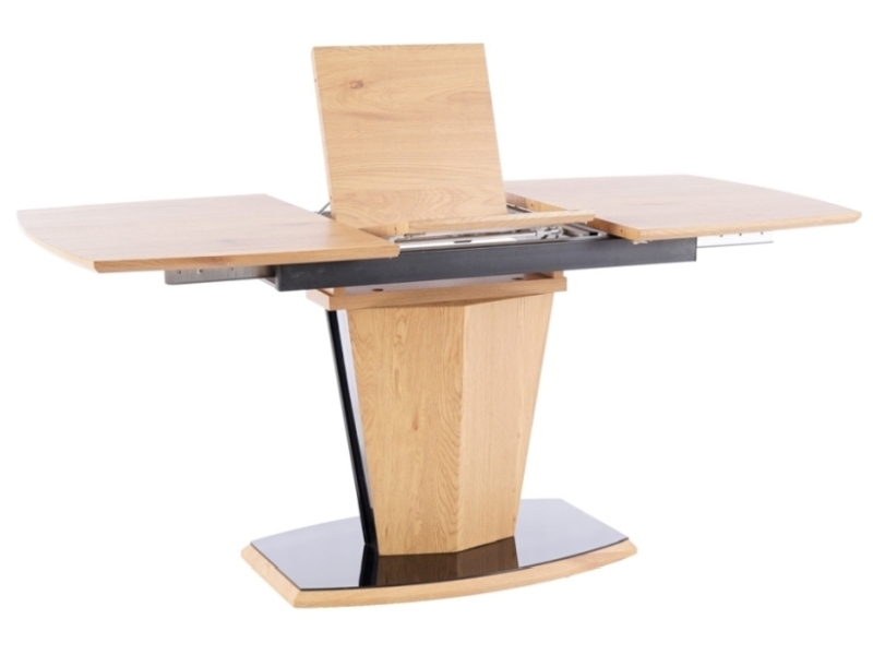 Стол раздвижной, столешница: МДФ+шпон, каркас: МДФ+шпон+закаленное стекло, цвет: дуб/дуб+черный лак.