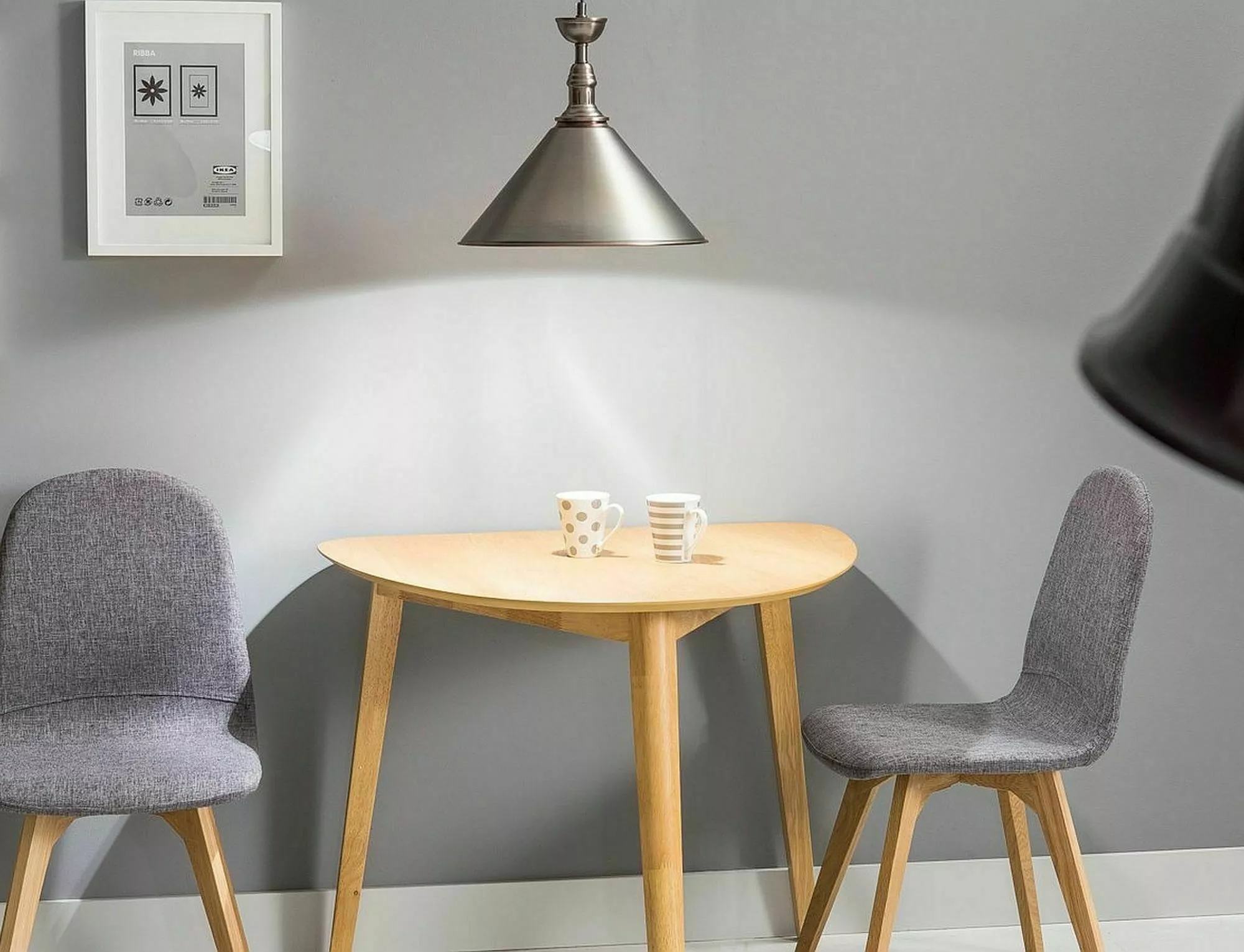 Оригинальный стол на 3 ножках с полукруглой столешницей – идеальное решение для маленькой кухни. Столешница: МДФ + натуральный шпон, каркас: дерево, цвет: дуб/дуб.