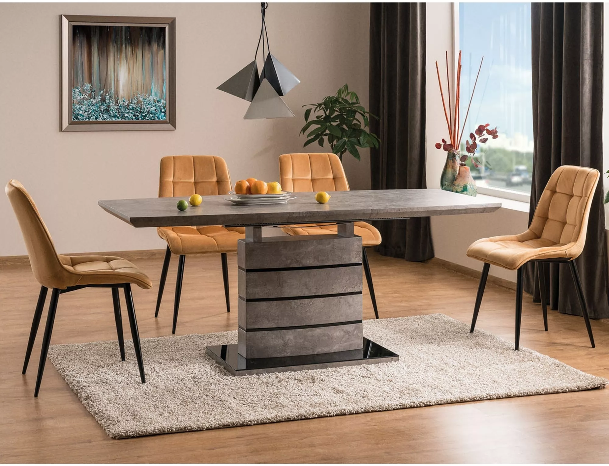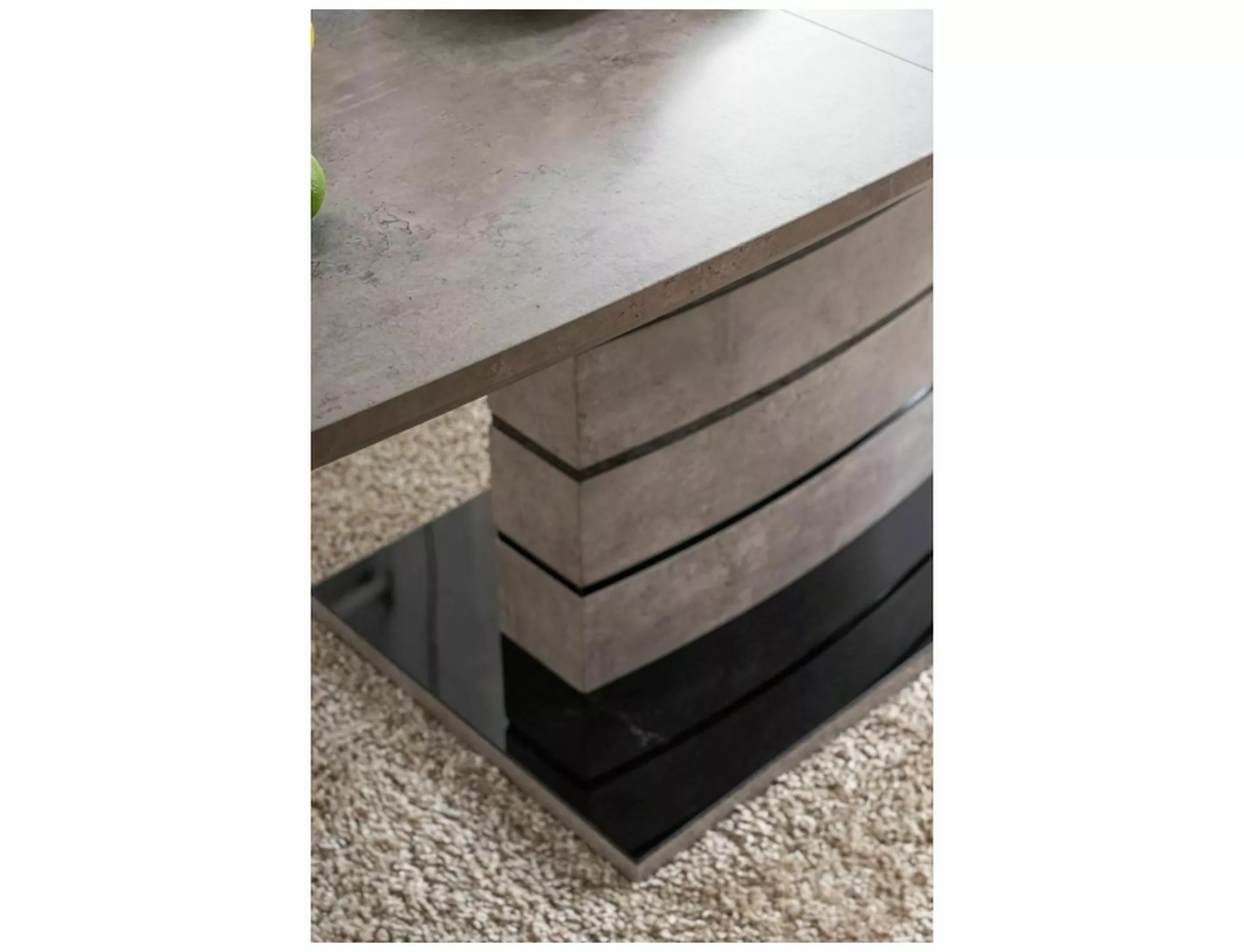 Стол раздвижной, столешница: МДФ, эффект бетона, каркас: МДФ+стекло, цвет: серый+черный.
