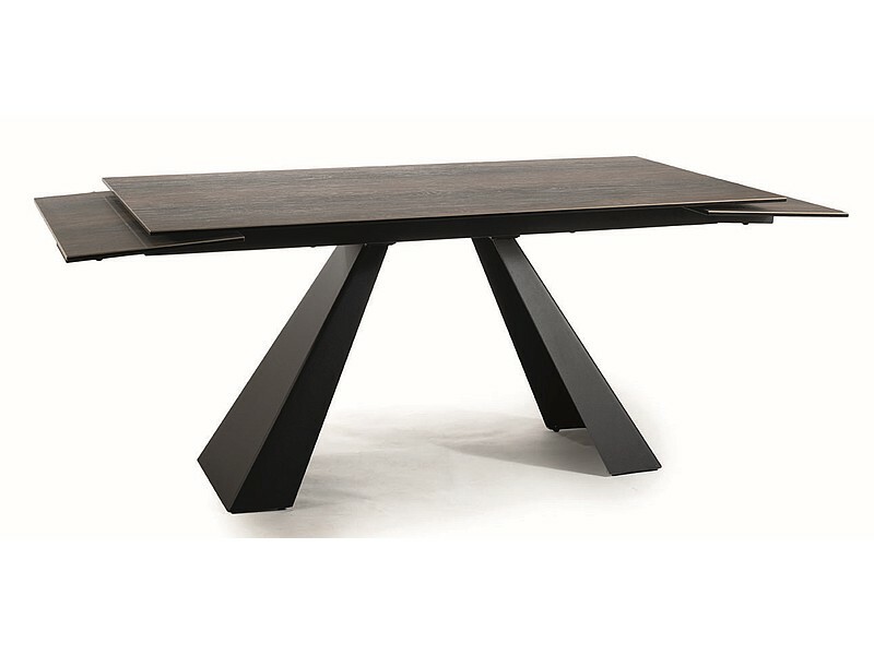 Стол раздвижной, столешница: закаленное стекло + испанская керамика LEGNO, эффект дерева, каркас: металл, цвет: коричневый/черный матовый.