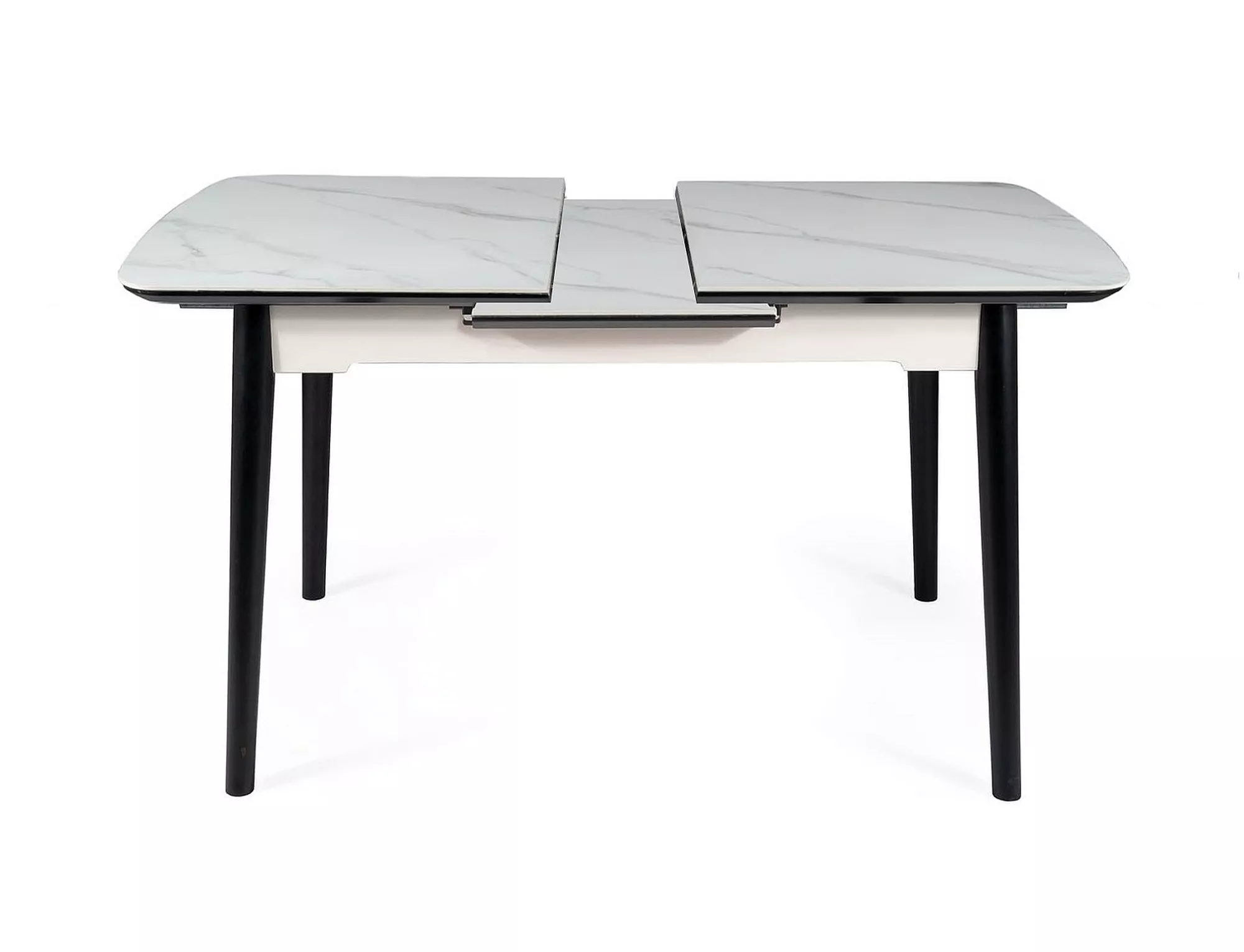 Стол раздвижной, столешница: МДФ + керамика, каркас: дерево, цвет: белый матовый/черный матовый.