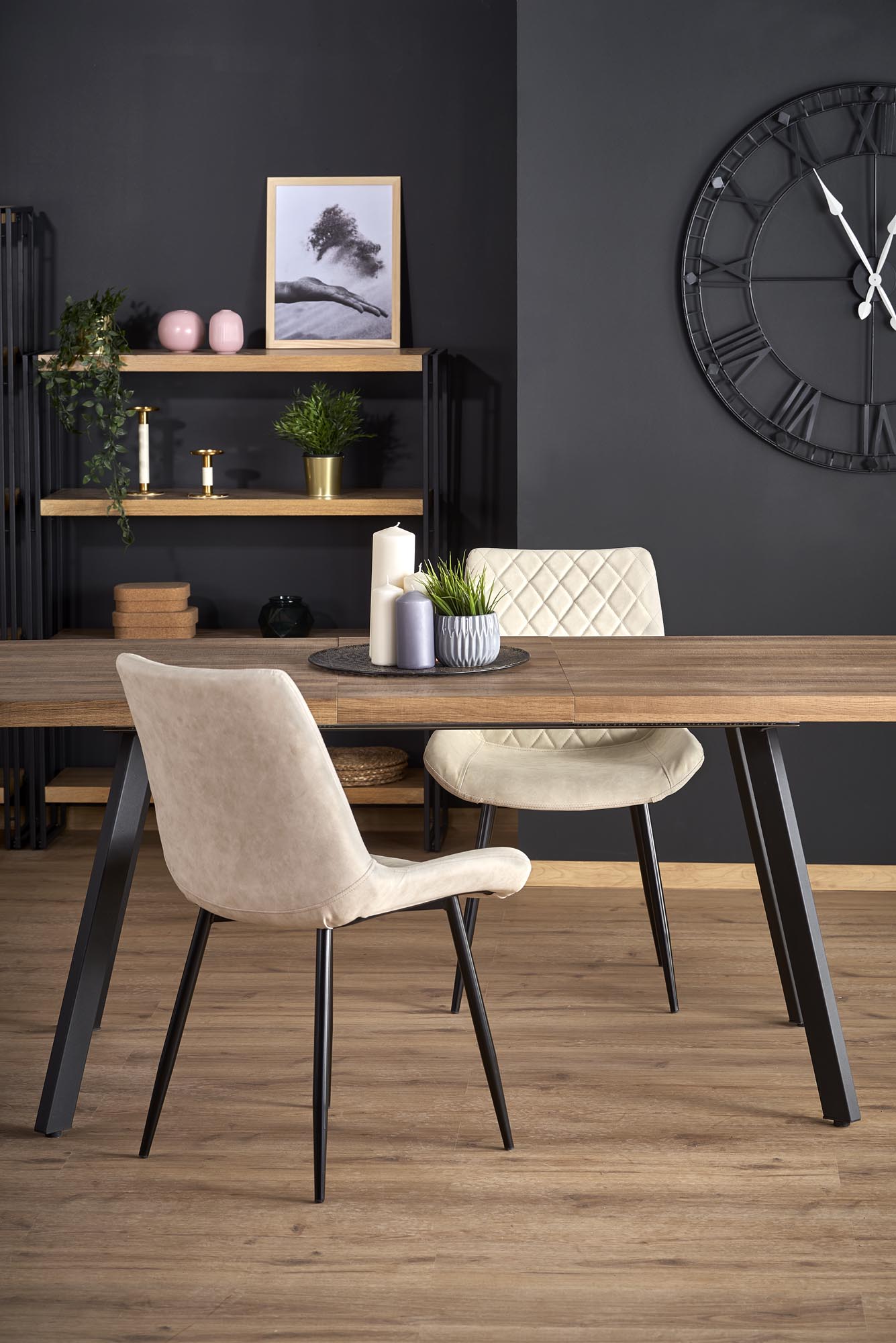 размеры: 140÷180/85/76 см, столик-раздвижной, материал: ламинированный МДФ/сталь с порошковым покрытием, цвет: столешница – медовый орех, ножки – черный