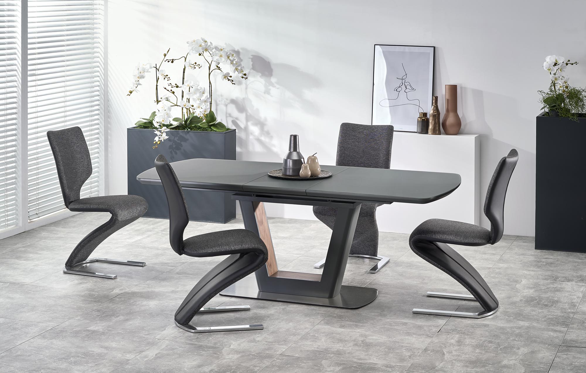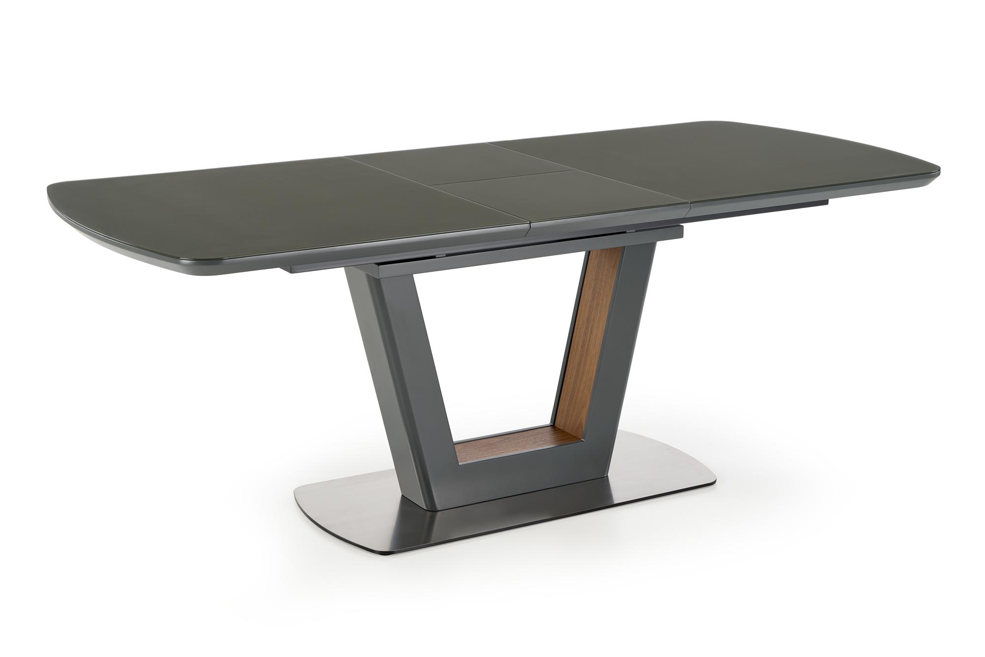 размеры: 160÷200/90/76 см, удлинительный стол, материал: стекло/лакированный МДФ/ламинированный МДФ/нержавеющая сталь, цвет: антрацит матовый/орех