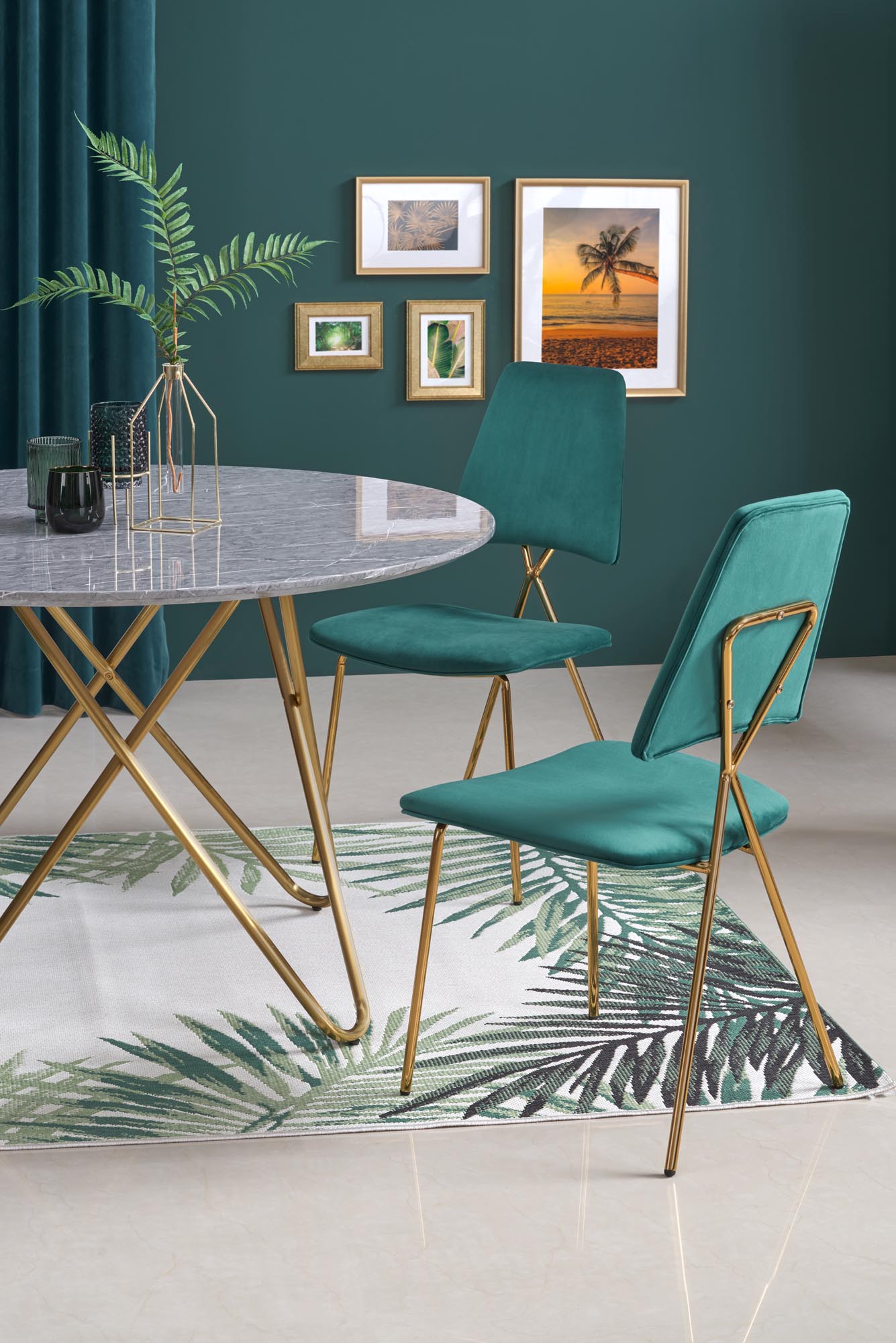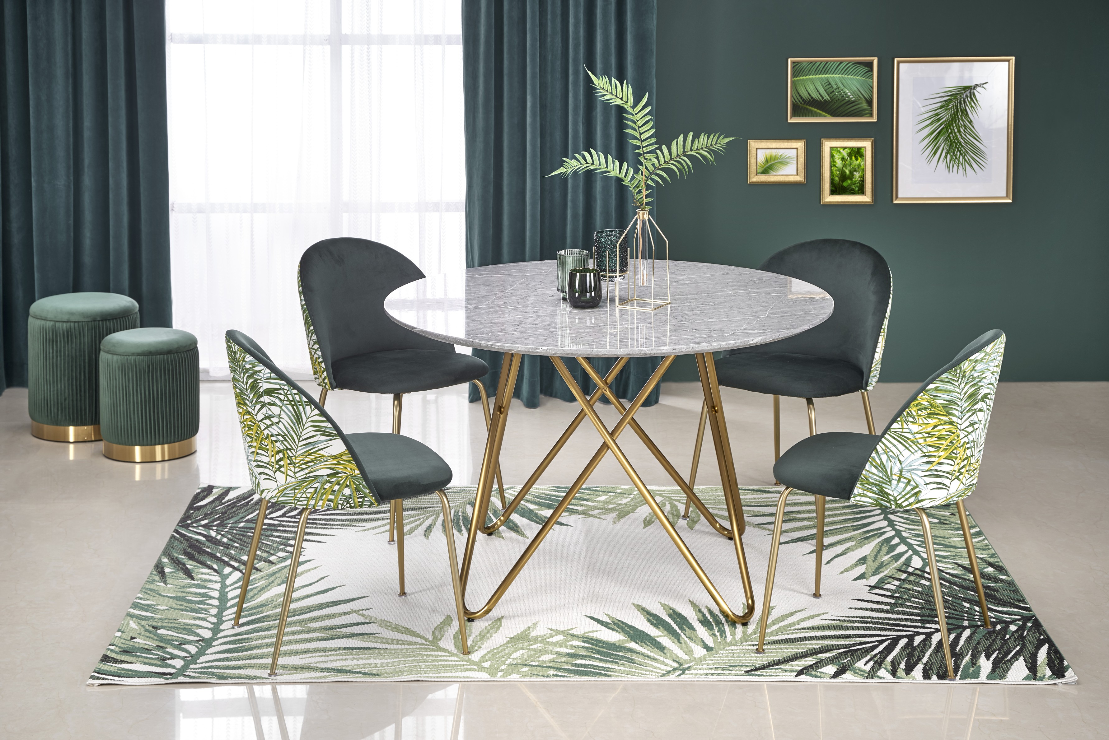размеры: o120/76 см, материал: ламинированный МДФ/хромированная сталь, цвет: столешница – серый мрамор, ножки – золото.
