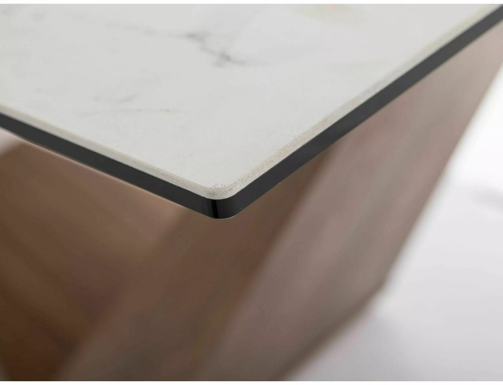 Стол раздвижной, столешница: закаленное стекло + керамика STATUARIO VENATO, каркас: металл, цвет: белый матовый/орех.