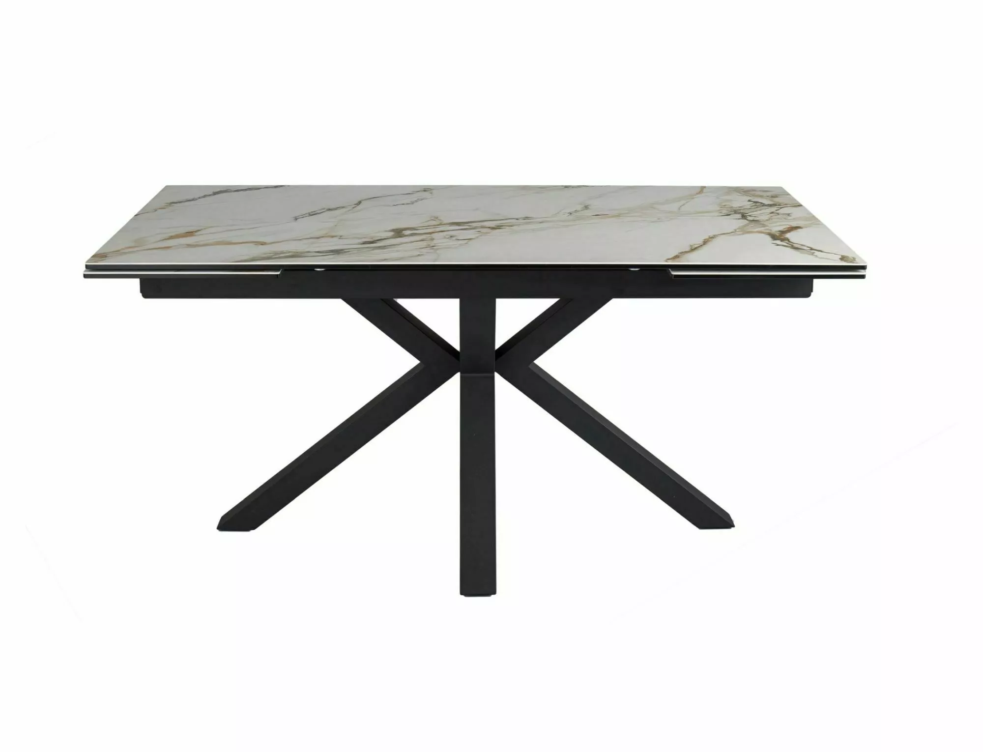 Стол раздвижной, столешница: закаленное стекло + керамика AMBER BIANCO, каркас: металл, цвет: белый матовый/черный матовый.