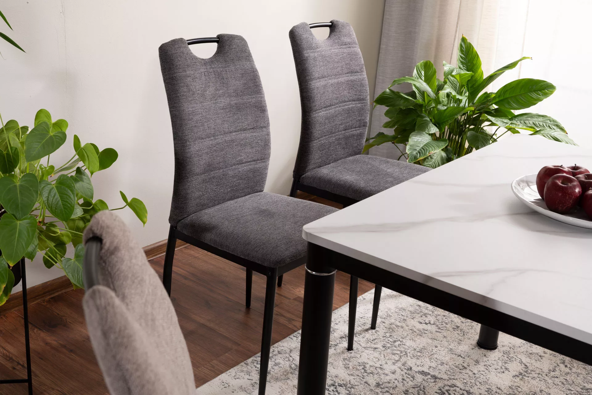 Стол, столешница: МДФ + шпон, каркас: металл, цвет: под мрамор белый/черный матовый.
