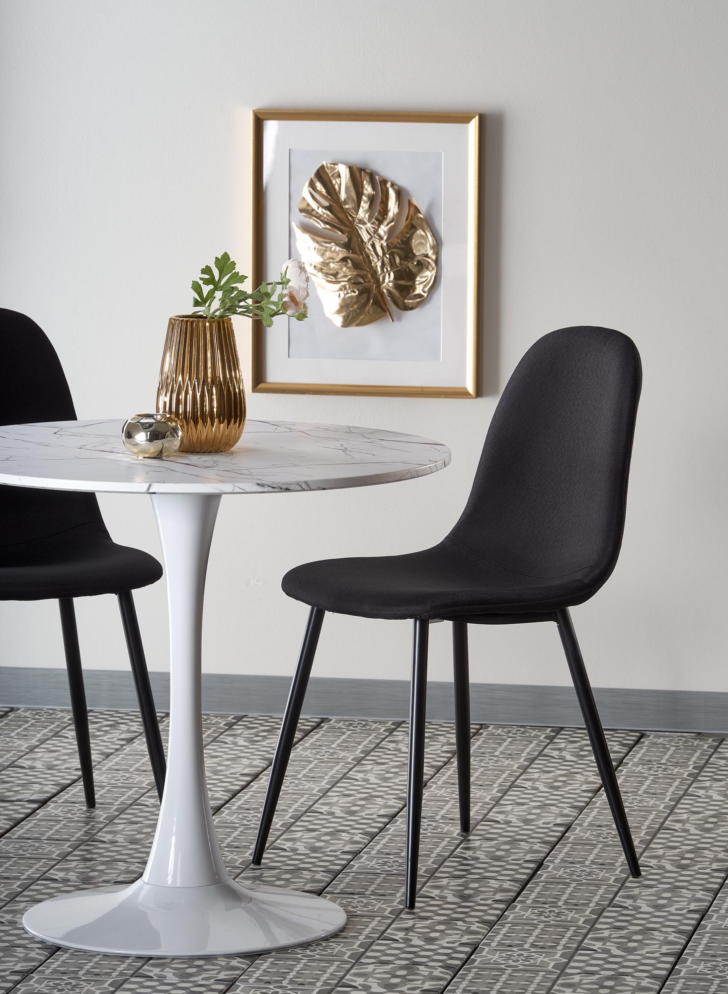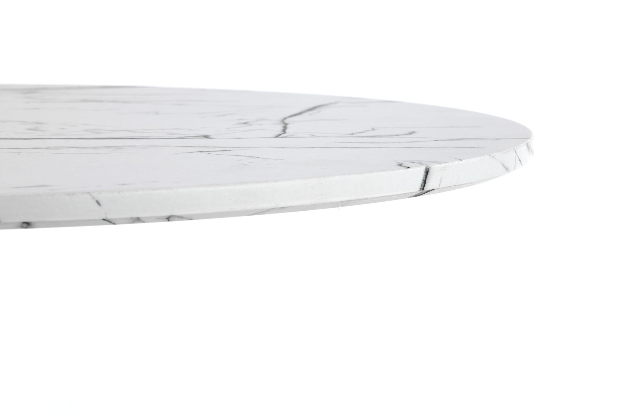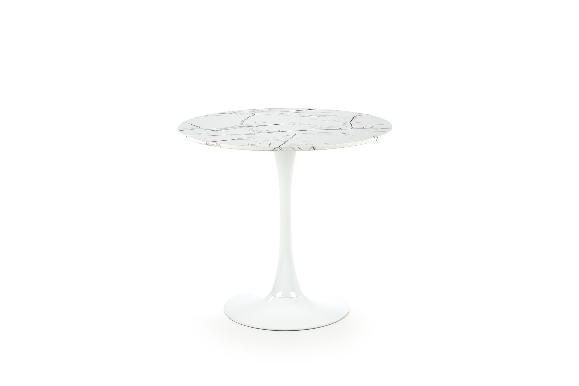 размеры: фи 80/73 см, материал: ламинированный МДФ/сталь с порошковым покрытием, цвет: столешница — белый мрамор, ножки — белые