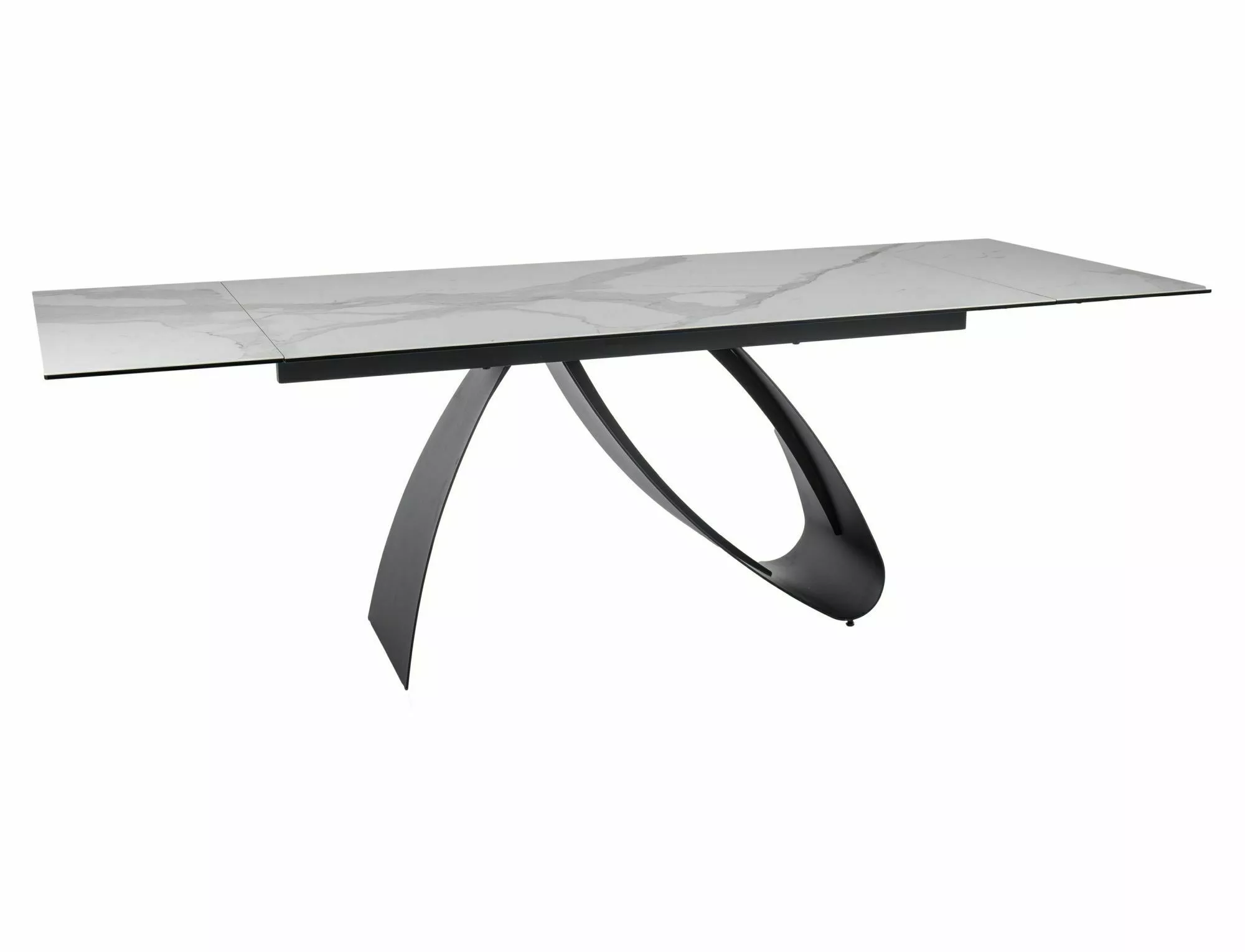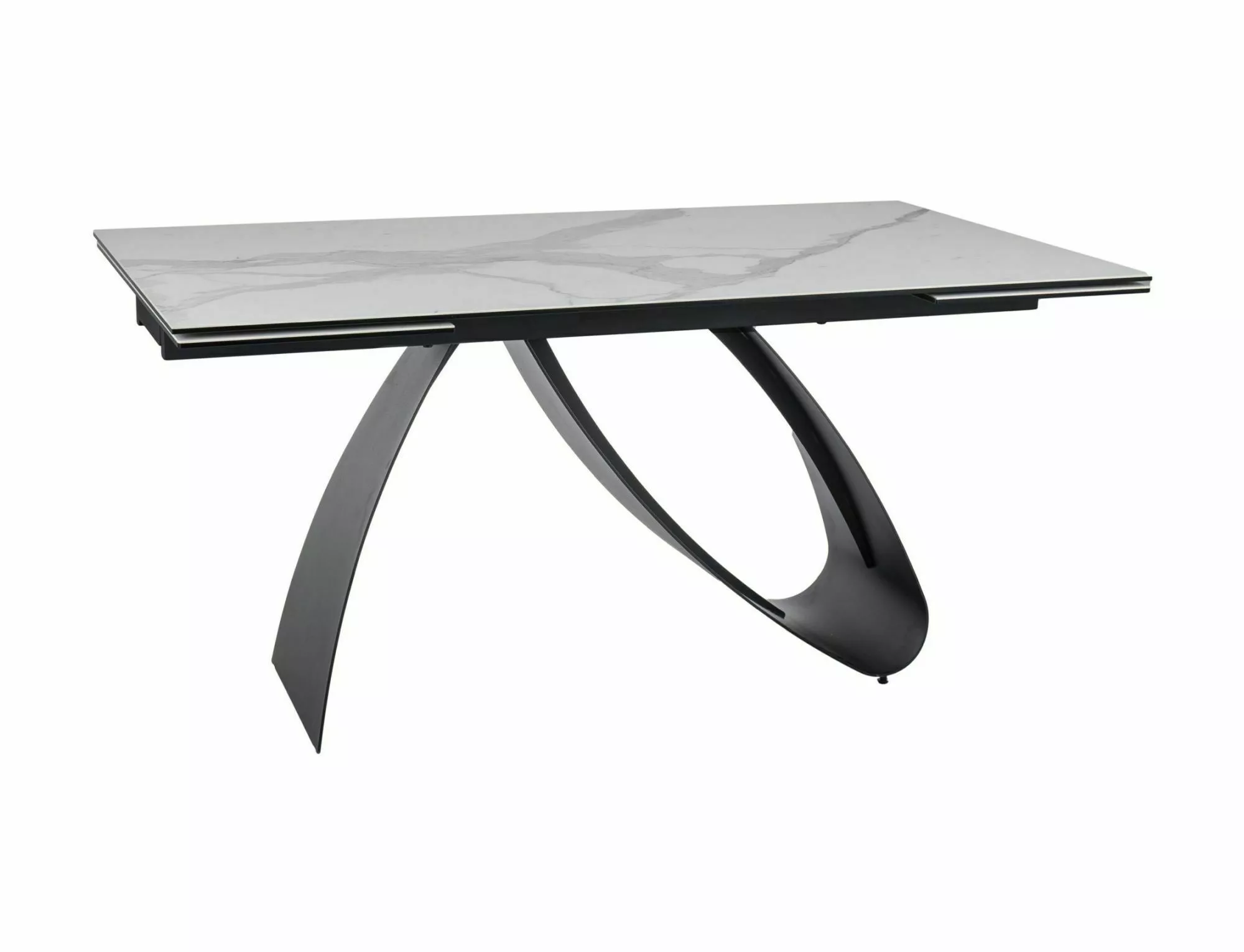 Стол раздвижной, столешница: закаленное стекло + керамика STATUARIO VENATO, каркас: металл, цвет: белый матовый/черный матовый.