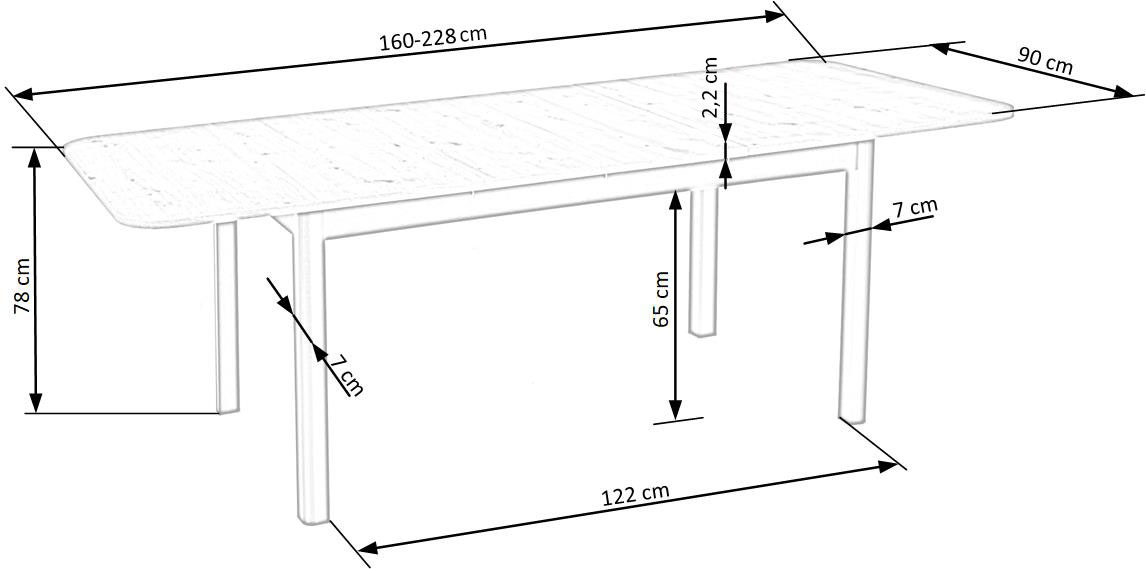 размеры: 160-228/90/78 см, столик-раздвижной, материал: ЛДСП/ламинированный МДФ, цвет: столешница — белый, ножки — белые