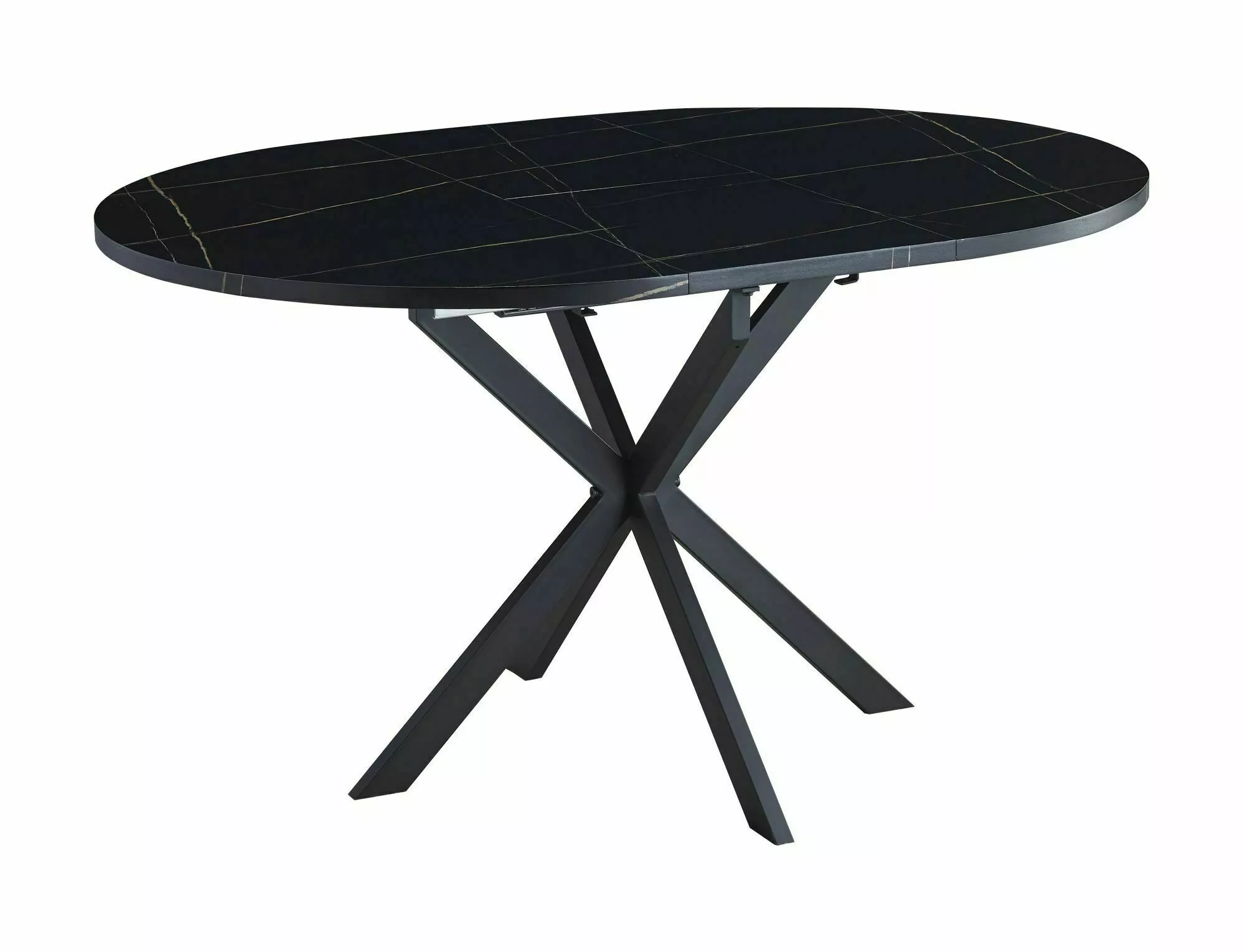 Стол раздвижной, столешница: МДФ + шпон, каркас: металл, цвет: черный под мрамор/черный.