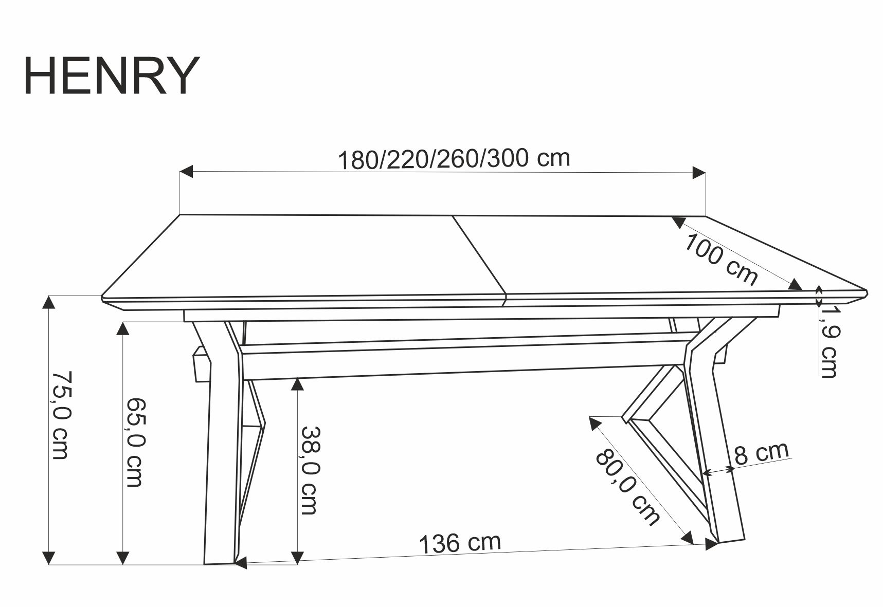 размеры: 180-300/100/75/136 см; столик-раздвижной, материал: МДФ + натуральный шпон/сталь с порошковой покраской, цвет: столешница — натуральный, ножки — черный