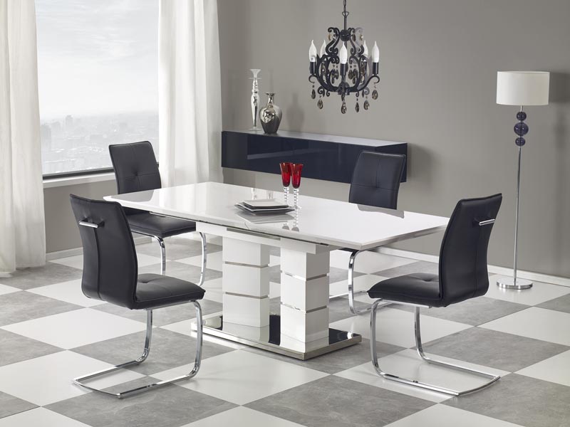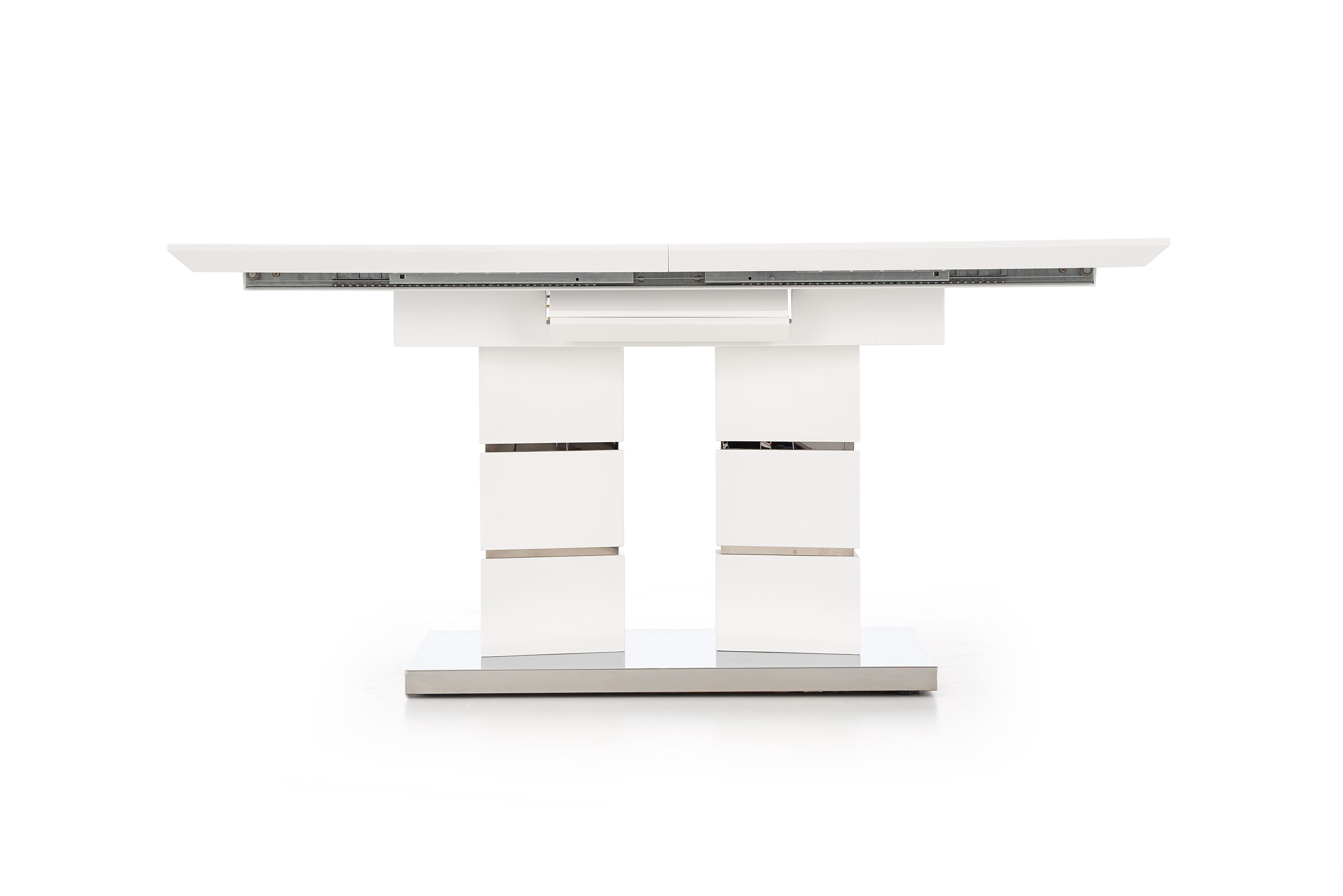 раздвижной стол, размеры: 160÷200/90/75 см, материал: лакированный МДФ/нержавеющая сталь, цвет: белый