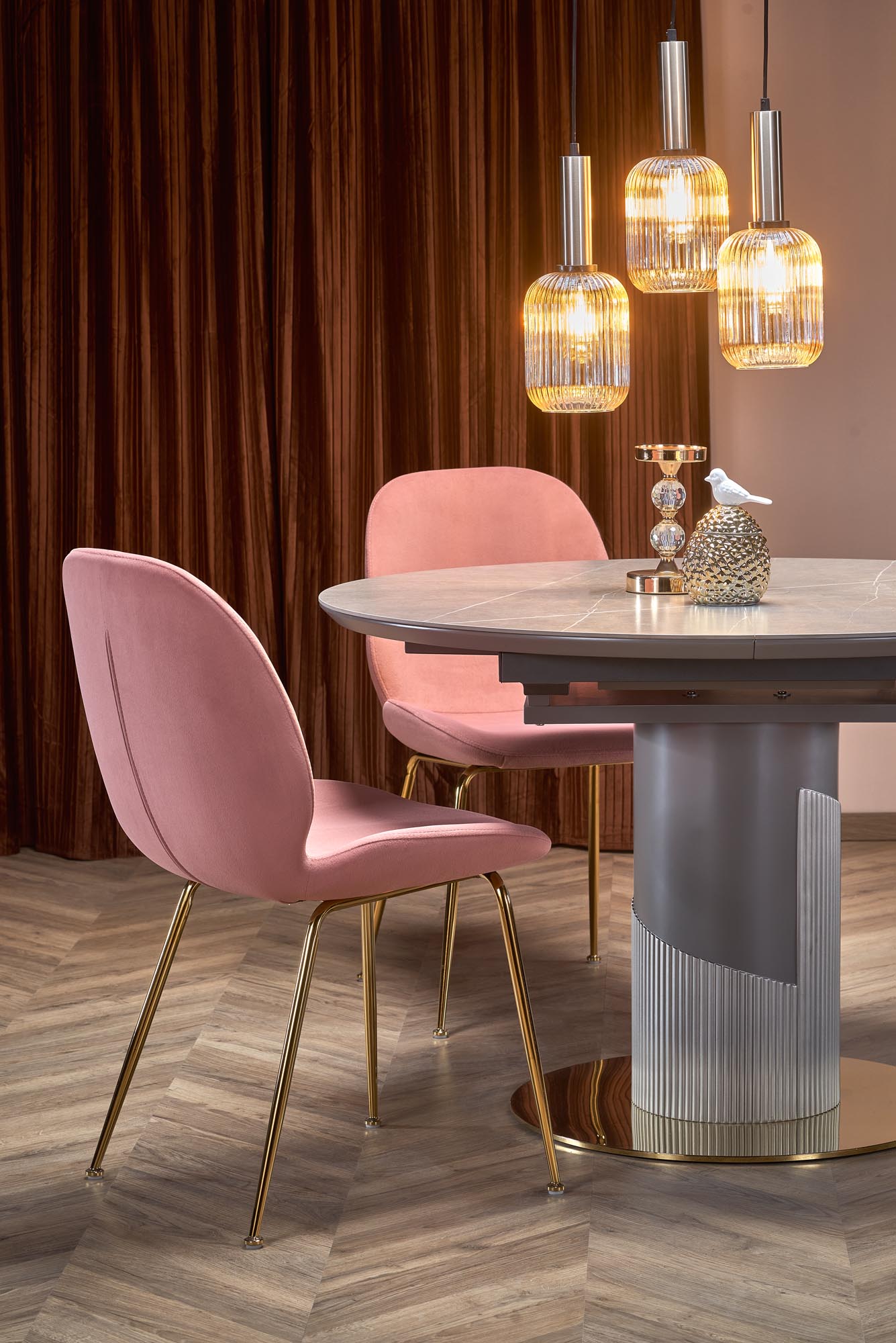 размеры: 120-160/120/76 см, столик-раздвижной, материал: керамика/лакированный МДФ/хромированная сталь/полипропилен, цвет: столешница – серый мрамор, ножки – светло-серый/золотой