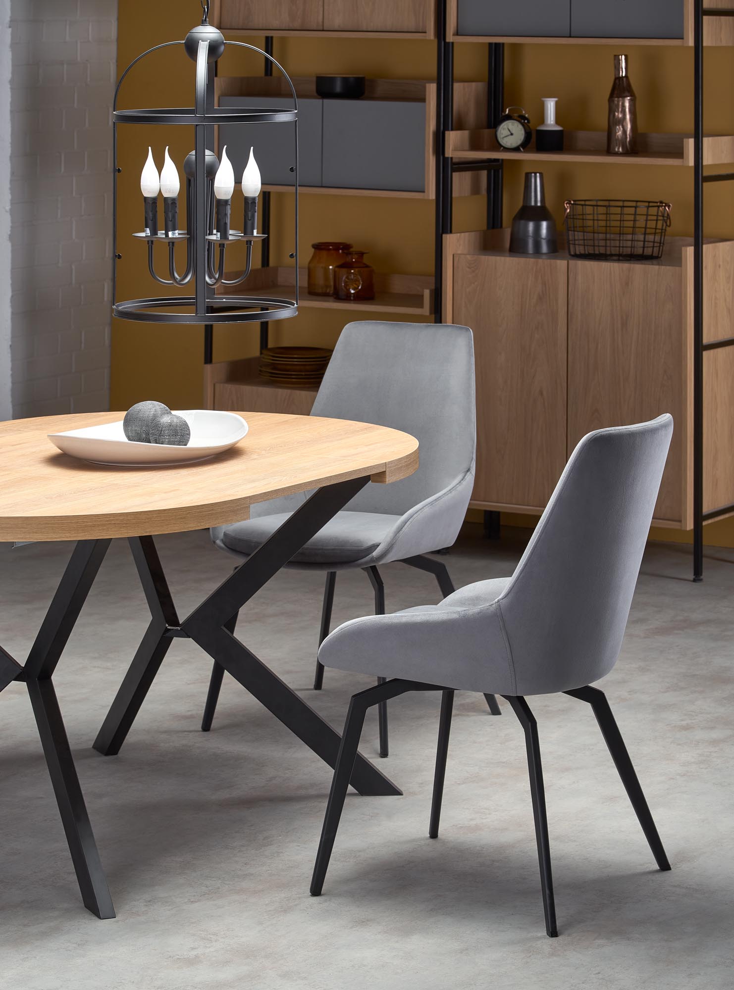 размеры: фи100-250/100/75 см, удлинительный стол, материал: ЛДСП/сталь с порошковым покрытием, цвет: золотистый дуб/черный