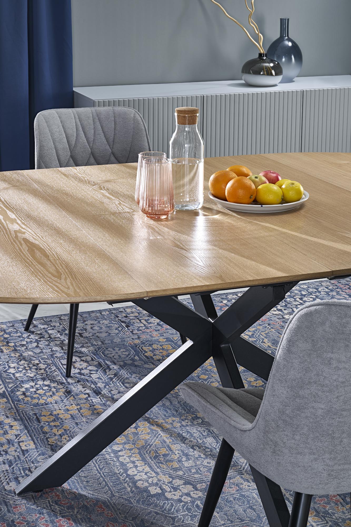 Размеры: 120/200/120/75 см, стол-раздвижной, материал: МДФ + натуральный шпон/сталь с порошковой покраской .